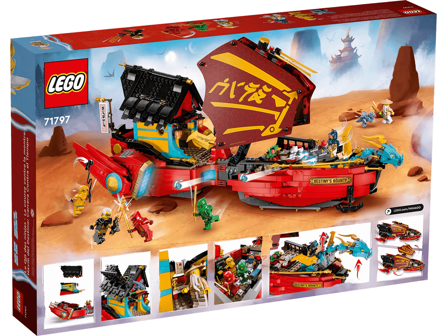 - LEGO® NINJAGO® airship – Kids aged 9+ can play out aerial adventures with this newly updated Destiny’s Bounty – race against time (71797) playset