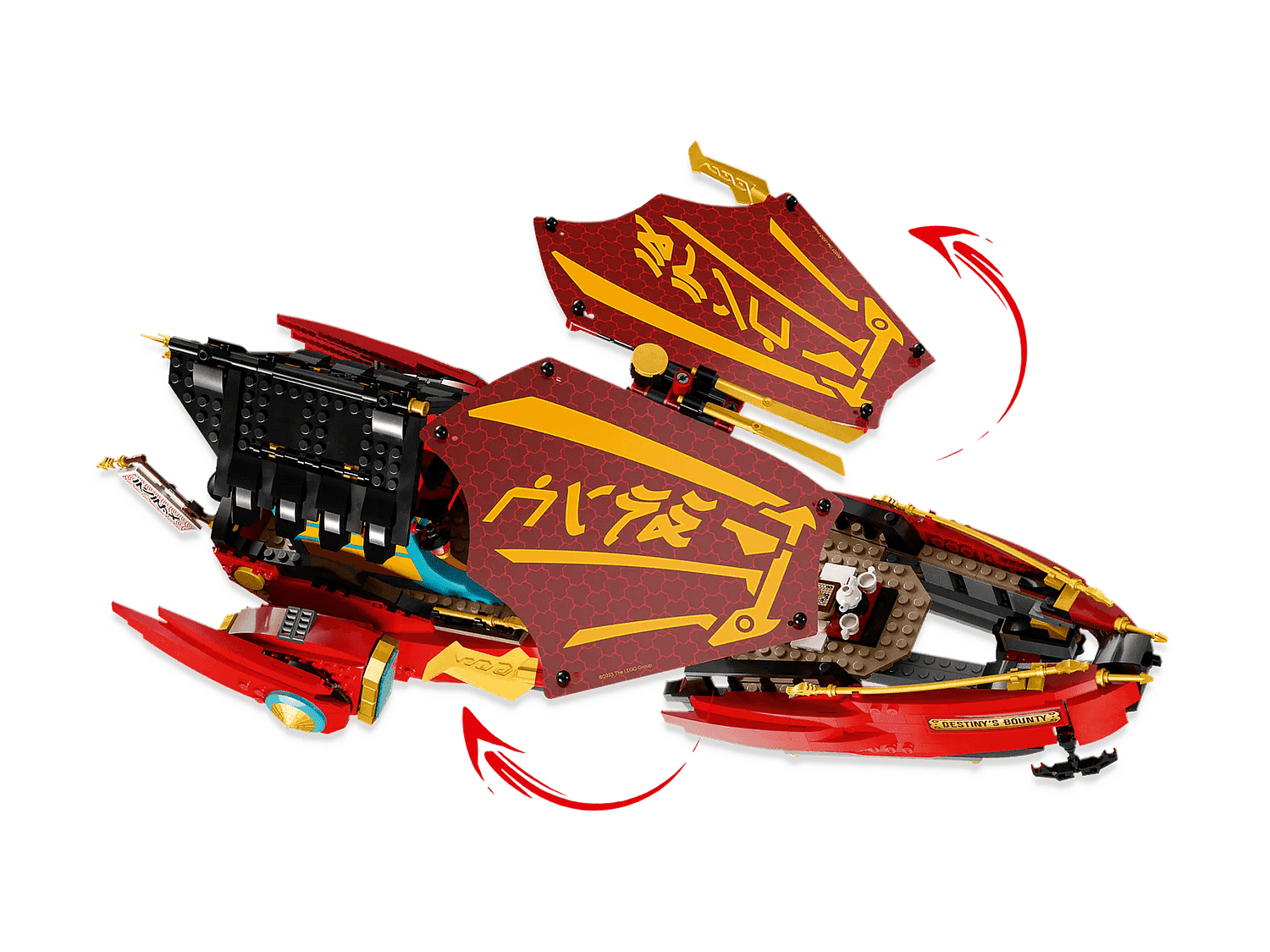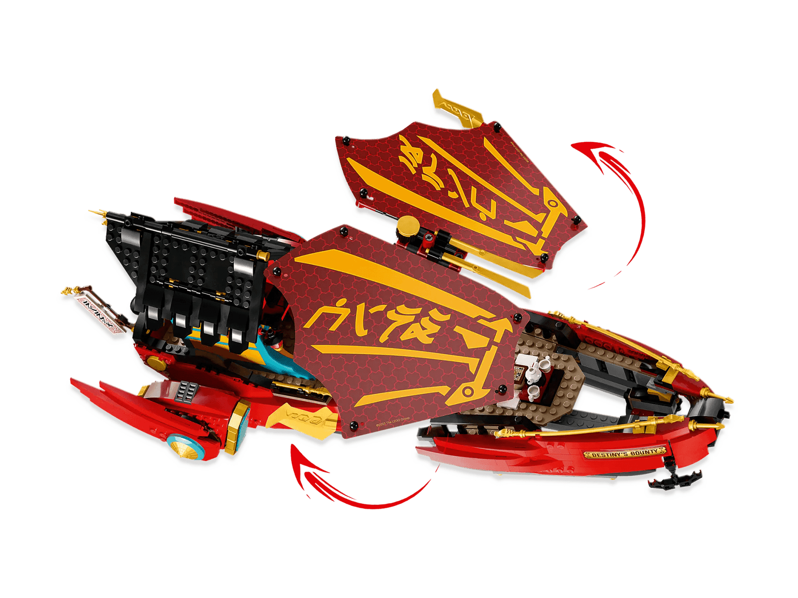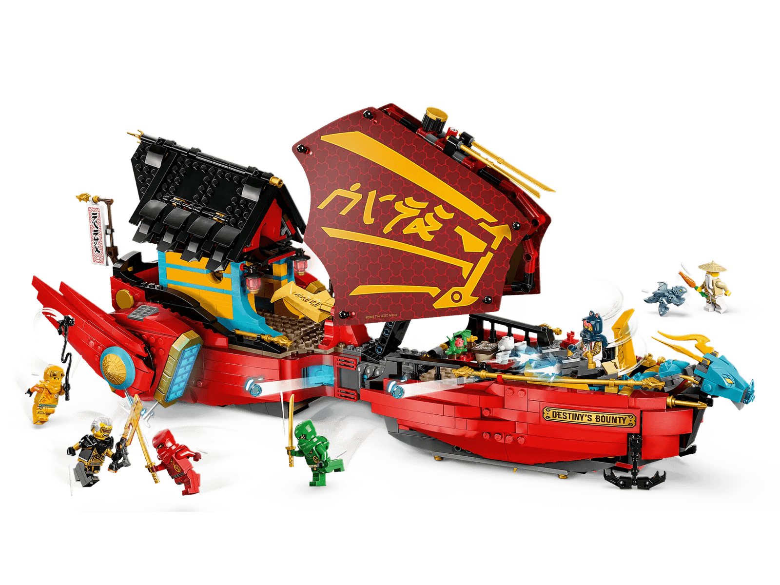 - Airship functions – The updated Destiny’s Bounty battleship includes stud shooters in the back, adjustable sails and 360-degree rotating engines