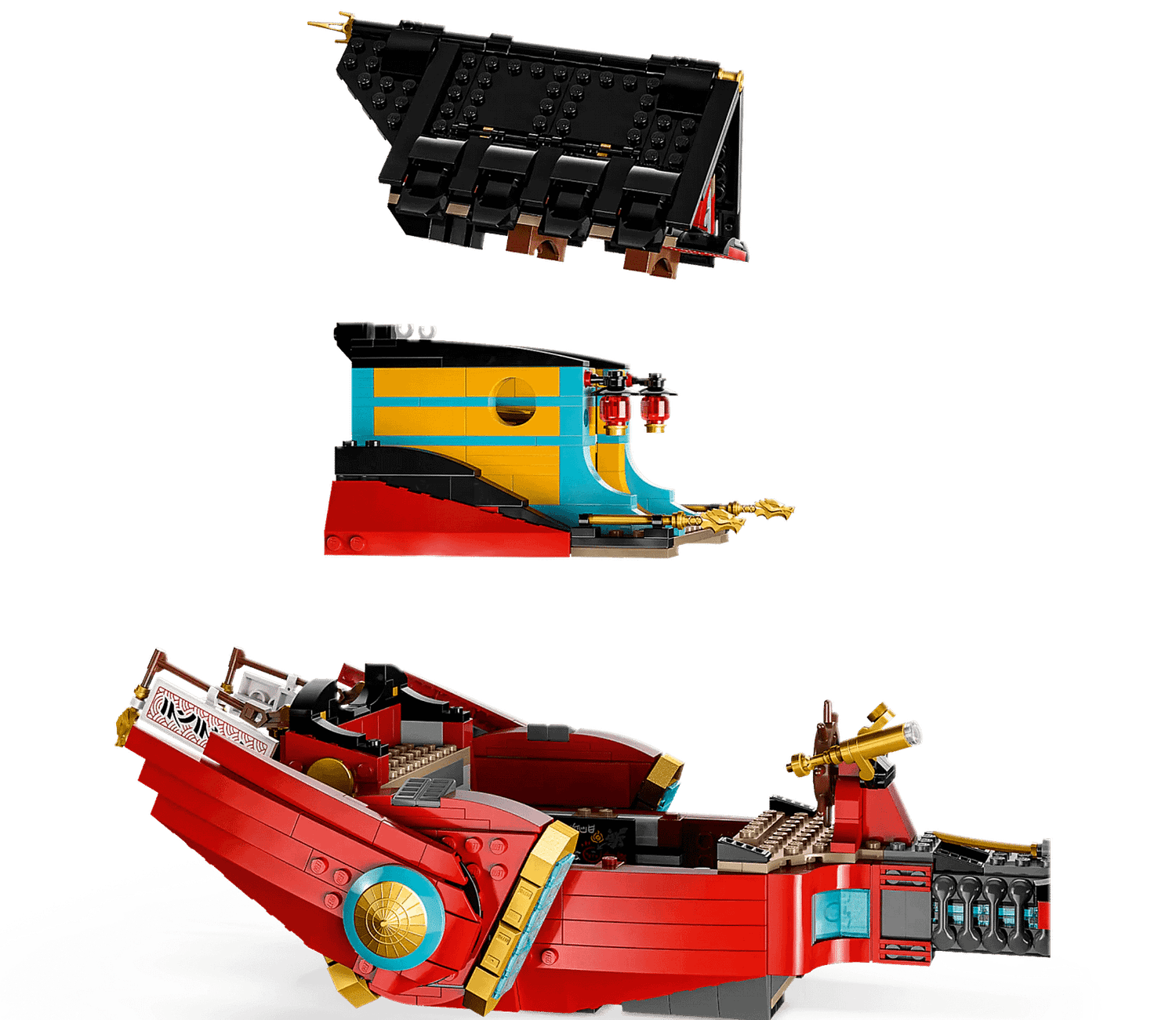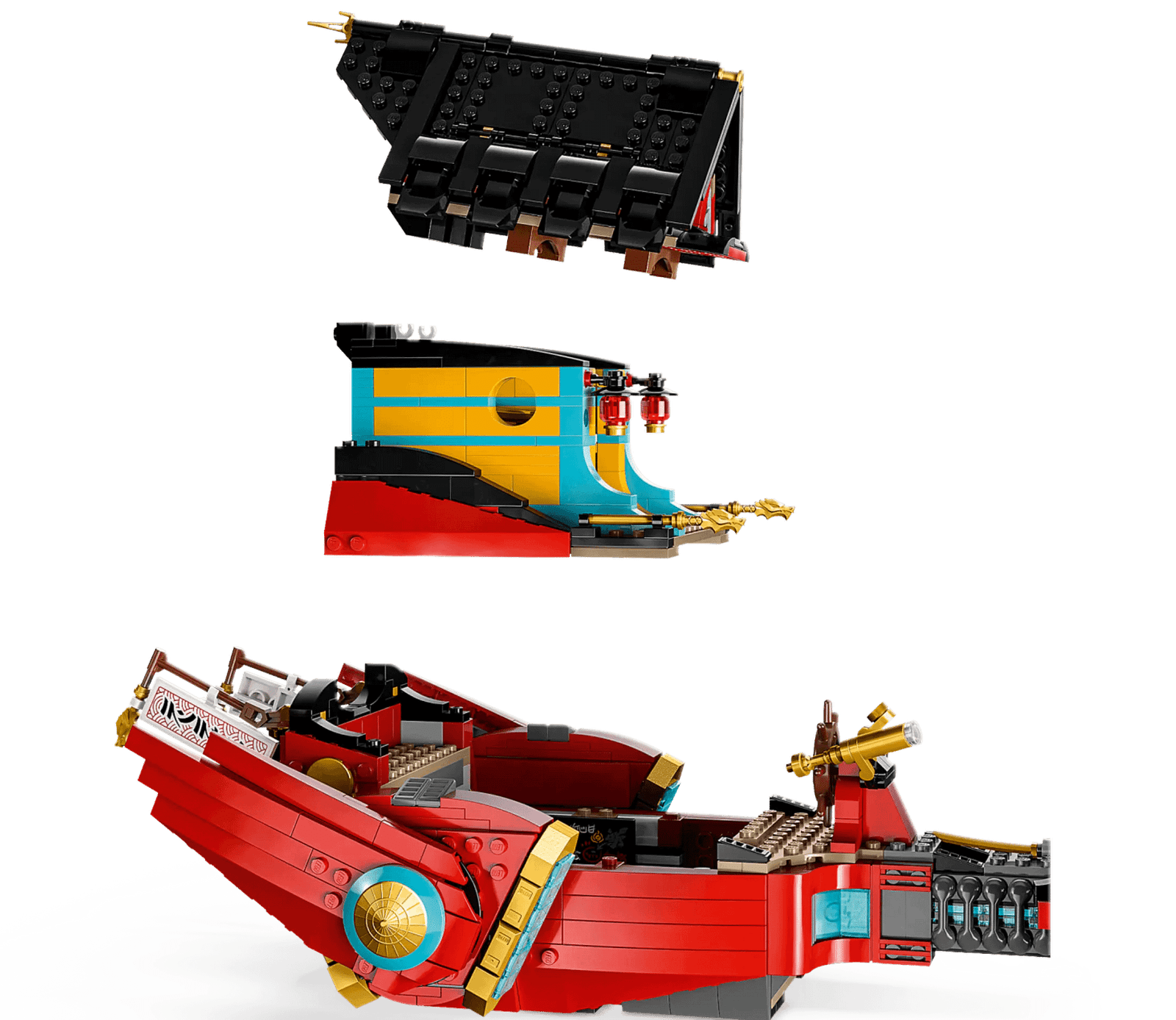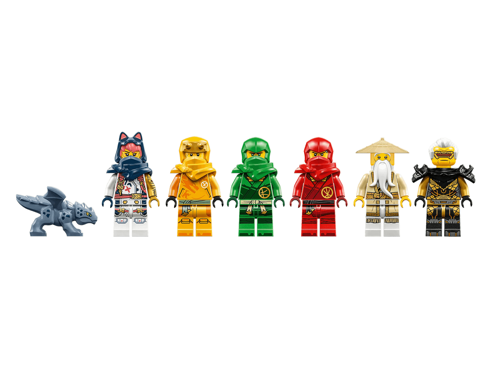 - 6 minifigures – The airship comes with Master Wu, Arin, Sora, Lloyd, Kai and Rapton minifigures, all of which are armed with at least 1 weapon for role-play battles