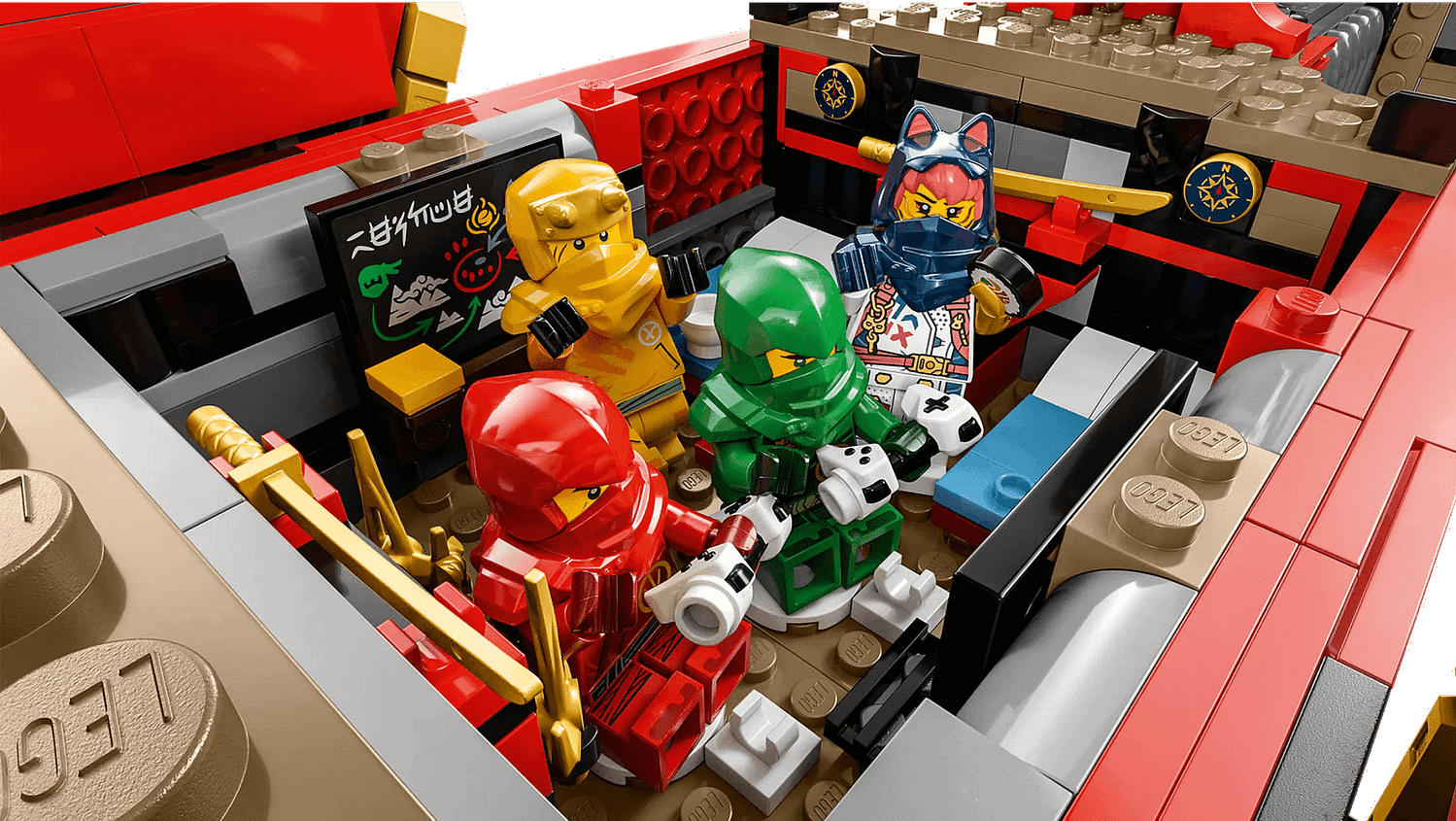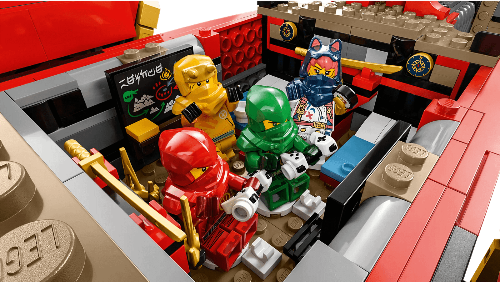 - Removable roof – Lift off the roof to reveal a navigation room and a playroom with an arcade machine for the ninja