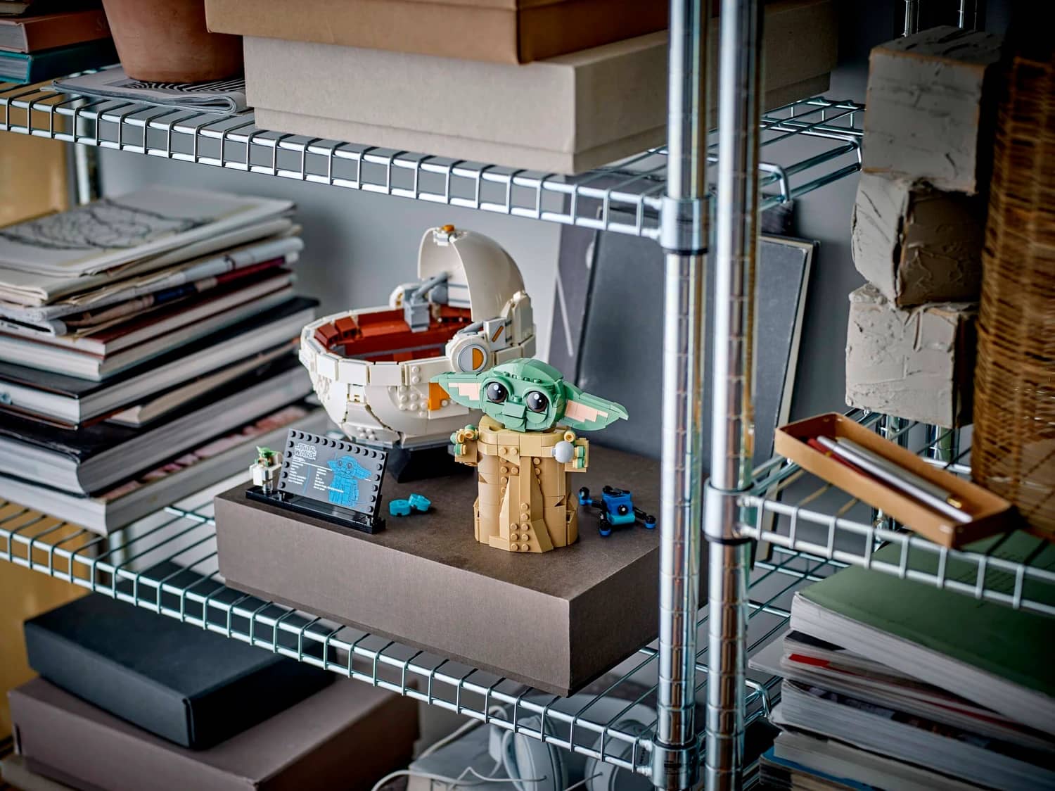 • Grogu LEGO® figure – The main buildable toy model comes with a Grogu information plaque on a stand with space for the included standard-size Grogu LEGO figure in a small buildable hover pram