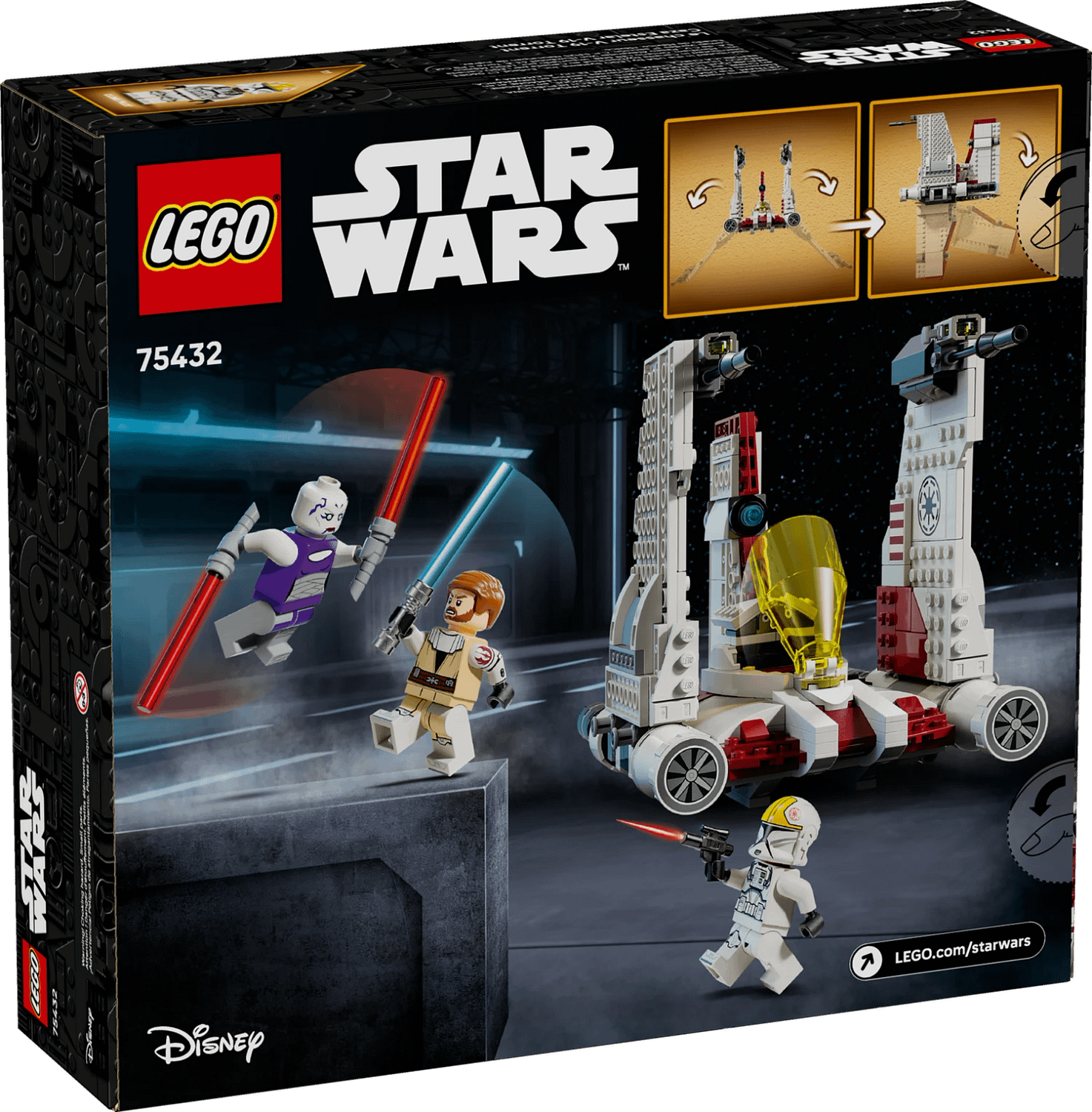 The buildable vehicle playset features 3 LEGO Star Wars minifigures, including Asajj Ventress with 2 red Lightsabers™ with special curved hilts and General Obi-Wan Kenobi with a blue Lightsaber™ for action-packed duels.