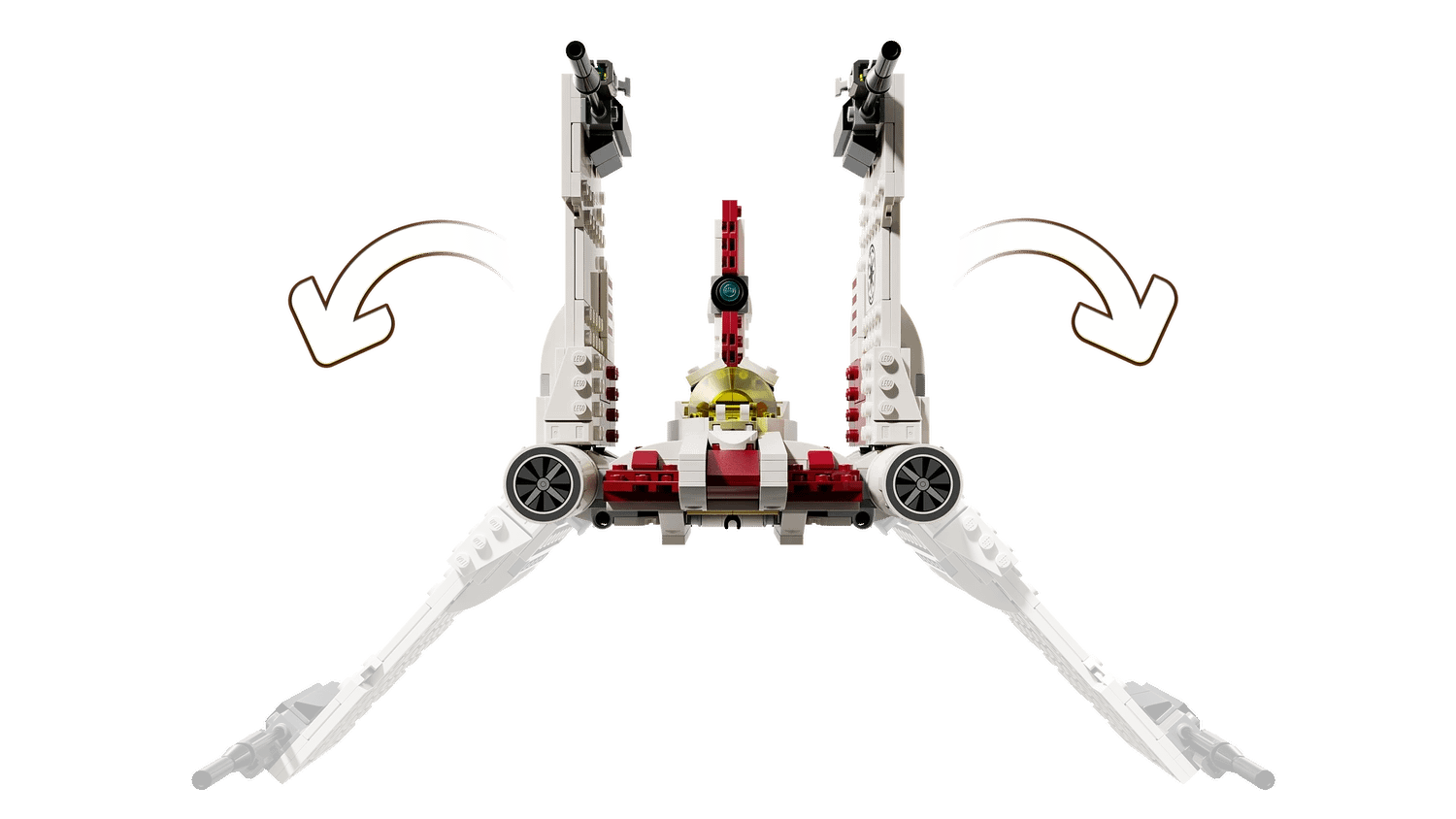 - LEGO® brick-built Star Wars™ starfighter – Features an opening cockpit, adjustable wings for flight and landing modes and 2 stud shooters for fantasy battle play
