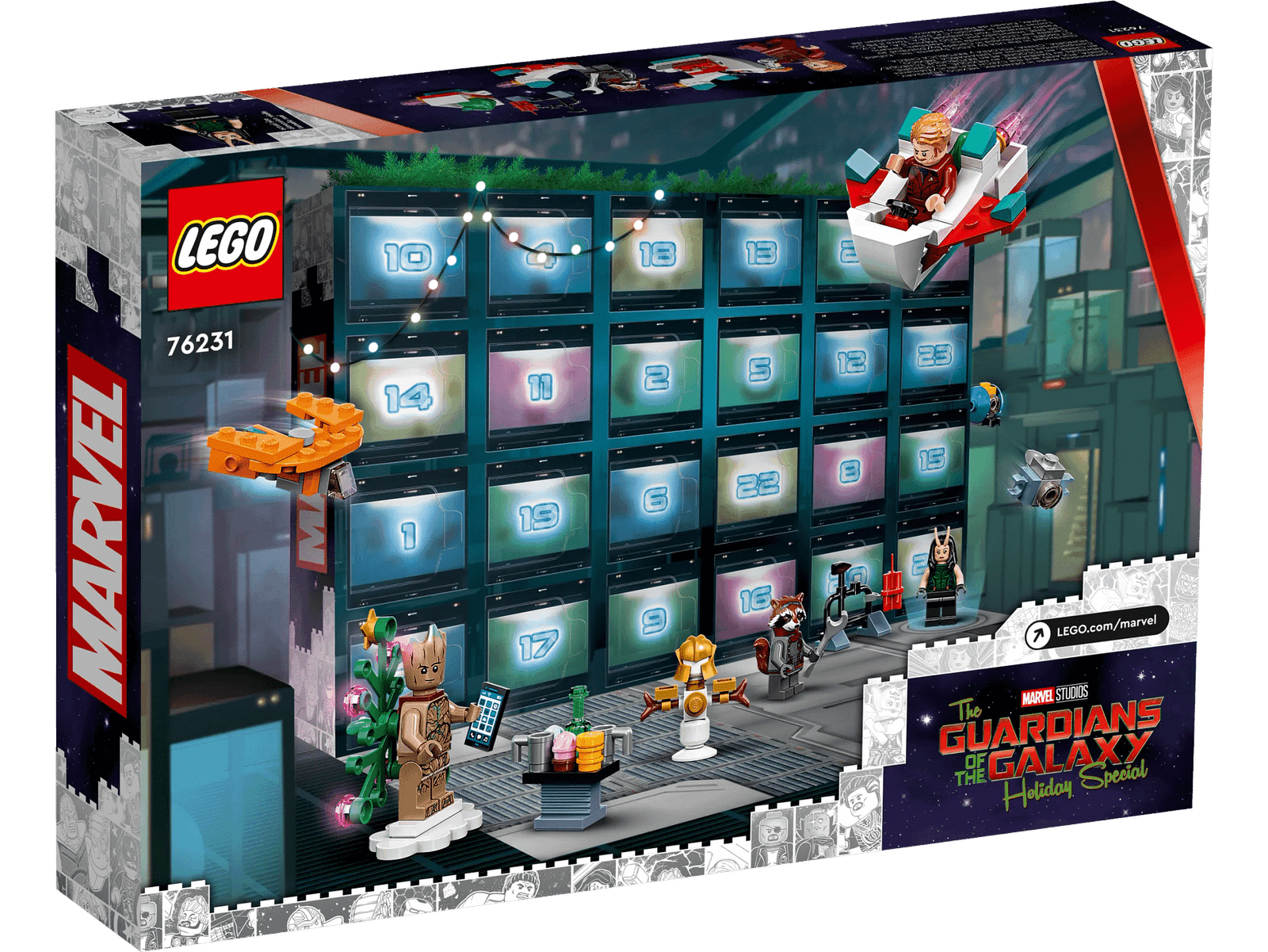 - 24 daily treats – Behind each door of the LEGO® Marvel Studios’ Guardians of the Galaxy Advent Calendar (76231) is a gift to inspire creative building and imaginative play
