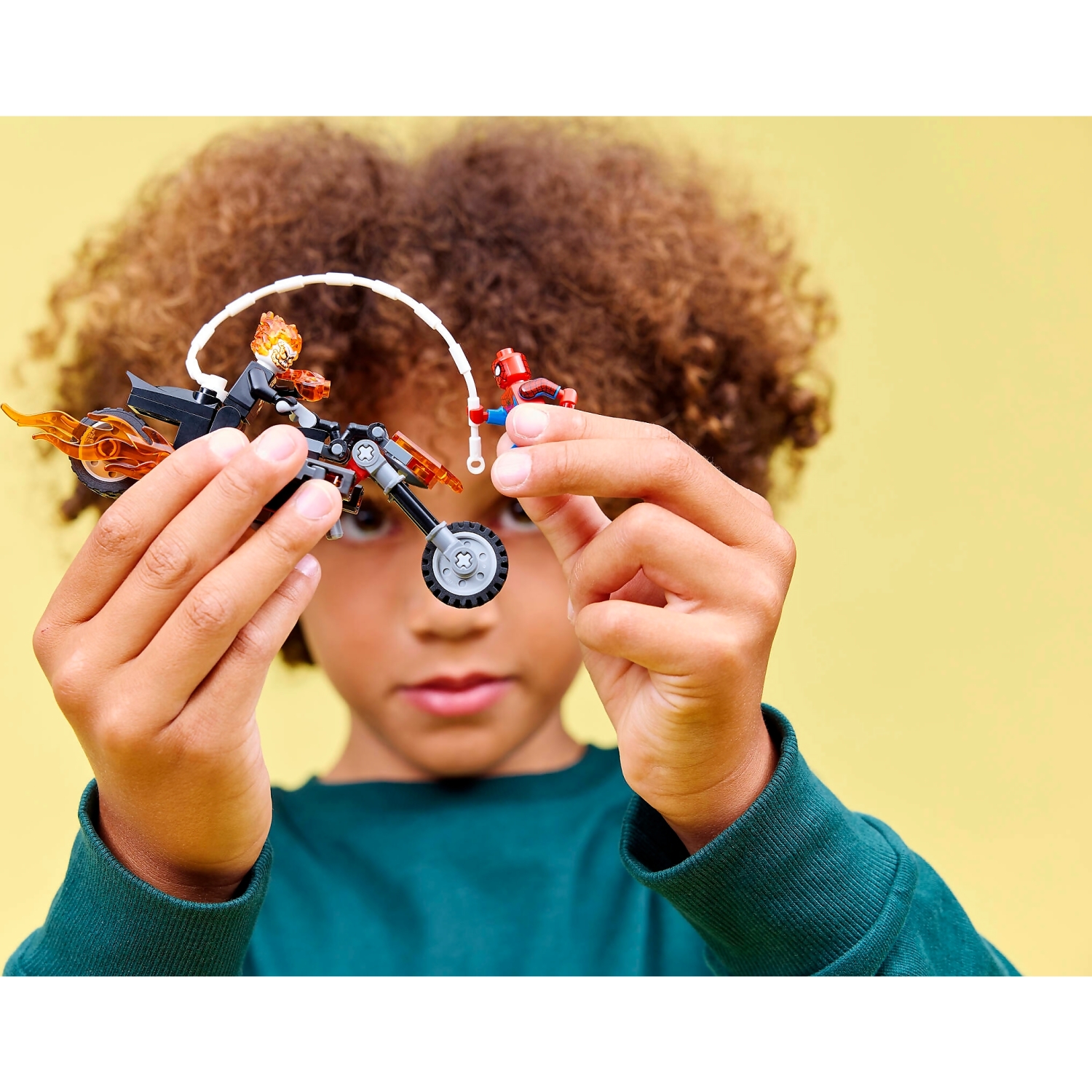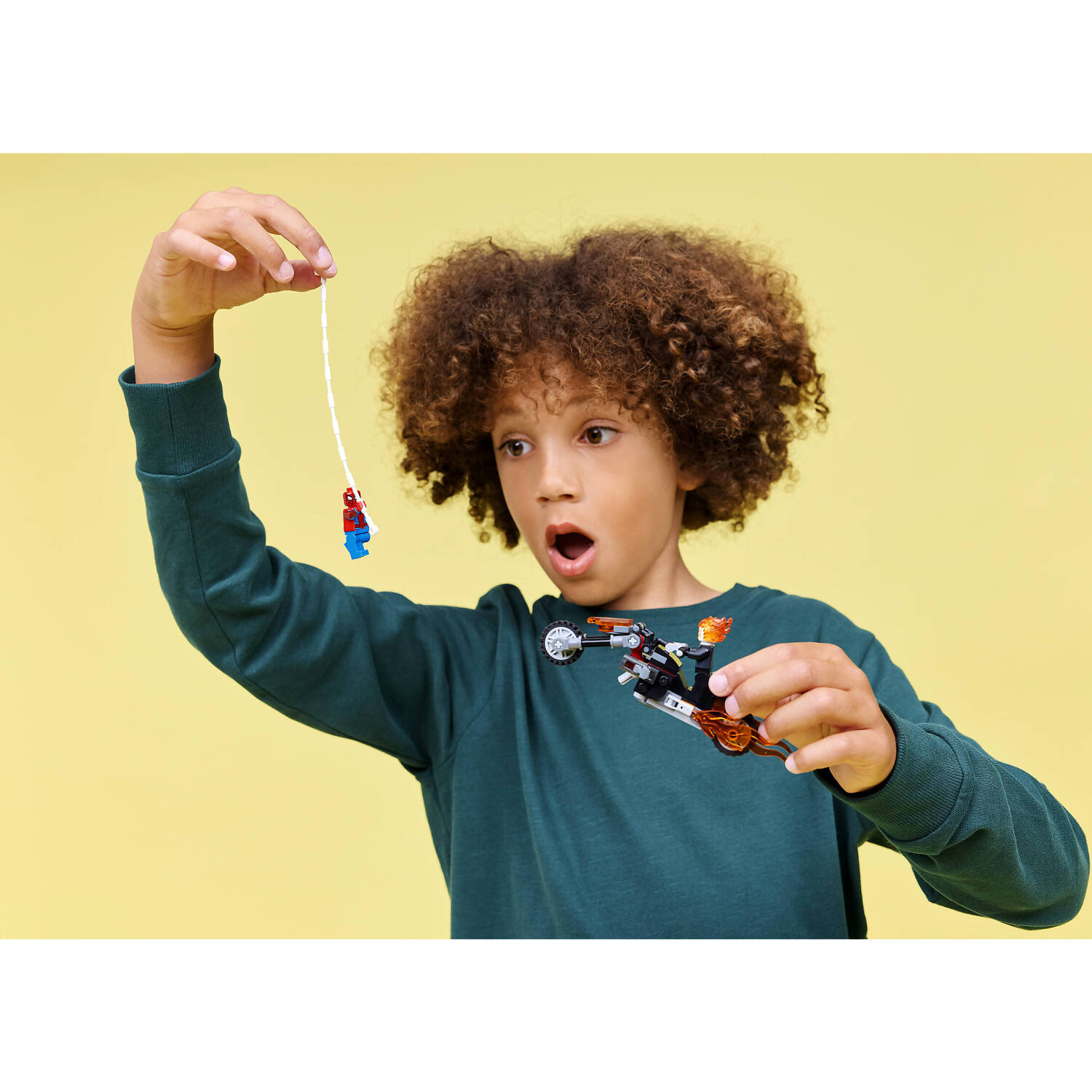 - SPIDER-MAN MOTORCYCLE BUILDING TOY – Zoom into Super Hero battle action with the LEGO® ǀ Marvel Spider-Man vs. Ghost Rider Motorcycle (76335) building set for boys, girls and kids ages 6 and up