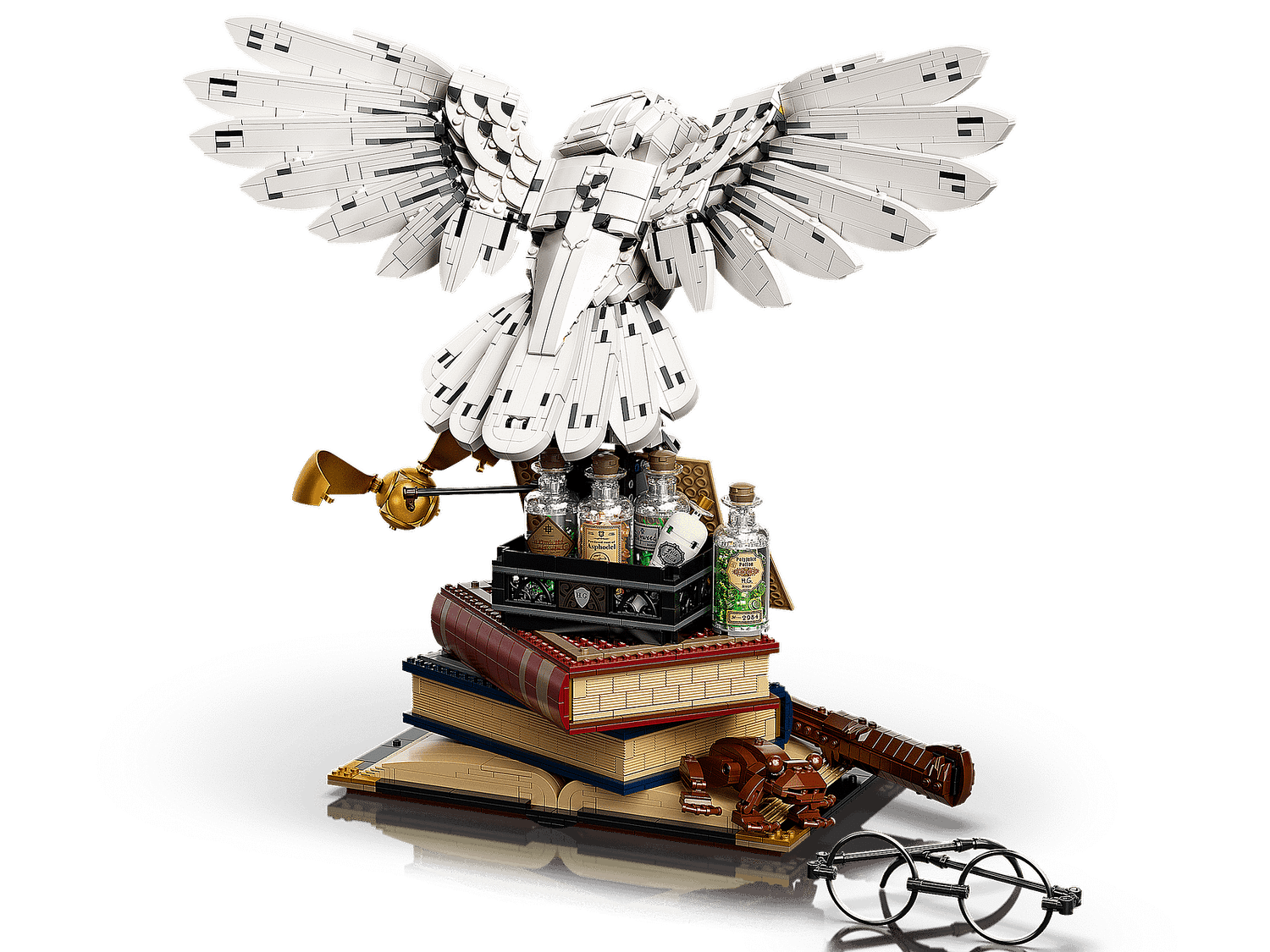 - Includes iconic artefacts: Harry’s wand and glasses, a tray of potions, Tom Riddle’s diary, the Golden Snitch, a Hogwarts™ scarf, Hedwig™ carrying an invitation to Hogwarts™ and more.