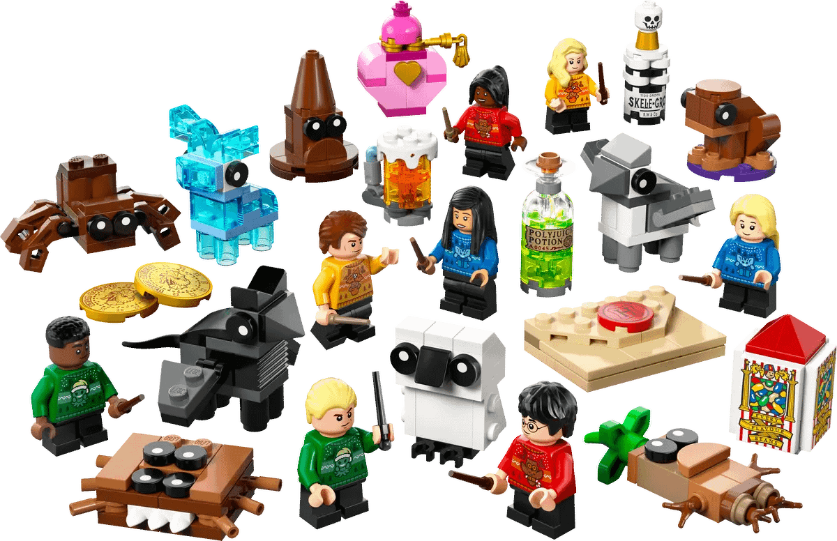 The Advent calendar contains LEGO figures of magical creatures such as Buckbeak™, Aragog and a Stag Patronus™. There are also 8 LEGO minifigures of popular characters, including Harry Potter, Cho Chang™, Draco Malfoy™ and Luna Lovegood™, each wearing Hogwarts™ Christmas jumpers and with wand elements. Fun, collectible mini builds of iconic items such as a Hogwarts acceptance letter, a box of Bertie Bott’s Every-Flavour Beans™, the Sorting Hat™, various magical potions and The Monster Book of Monsters add to the play possibilities.