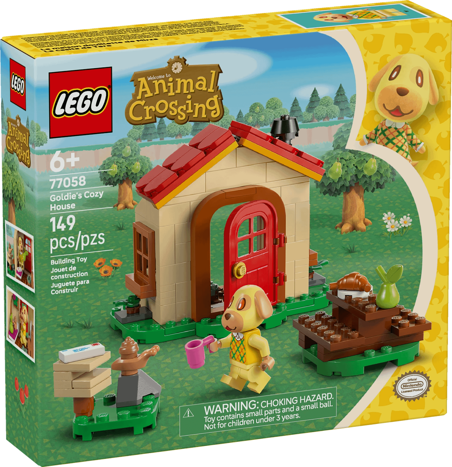- LEGO® Animal Crossing™ Goldie’s Cosy House – This building set provides imaginative fun for 6-year-old-and-up girls and boys who like Animal Crossing, home-building toys and cute dogs