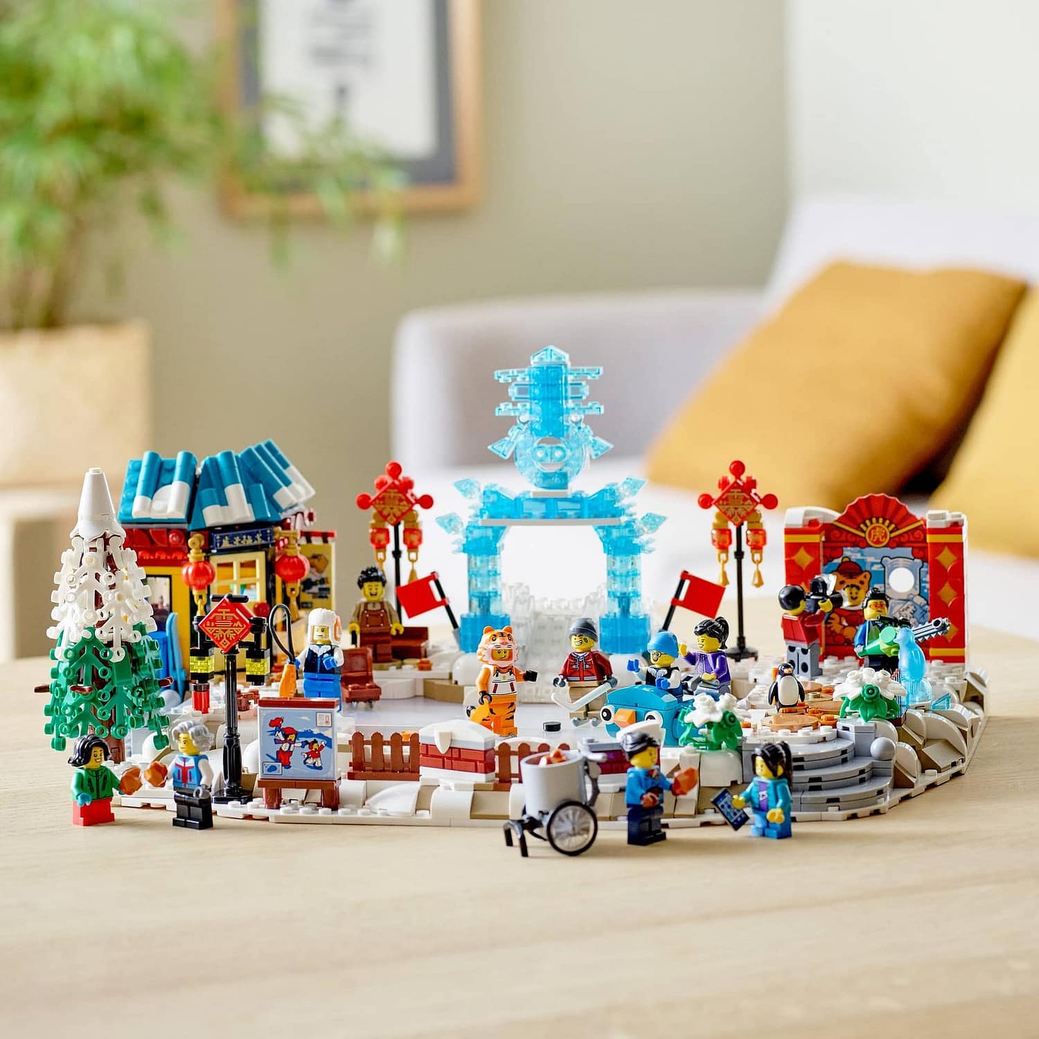 - Lunar New Year play-and-display set – Kids can recreate the traditional family fun of a Chinese New Year Ice Festival with this LEGO® set (80109), featuring a-detailed, buildable winter scene