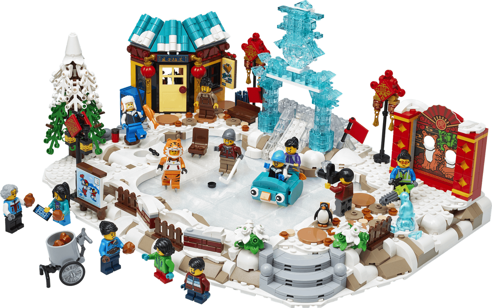 - 13 LEGO® minifigures with lots of accessories – Includes a person in a tiger outfit to mark the Year of the Tiger, sweet-potato vendor, ice sculptor, mom, dad and children, plus a penguin figure