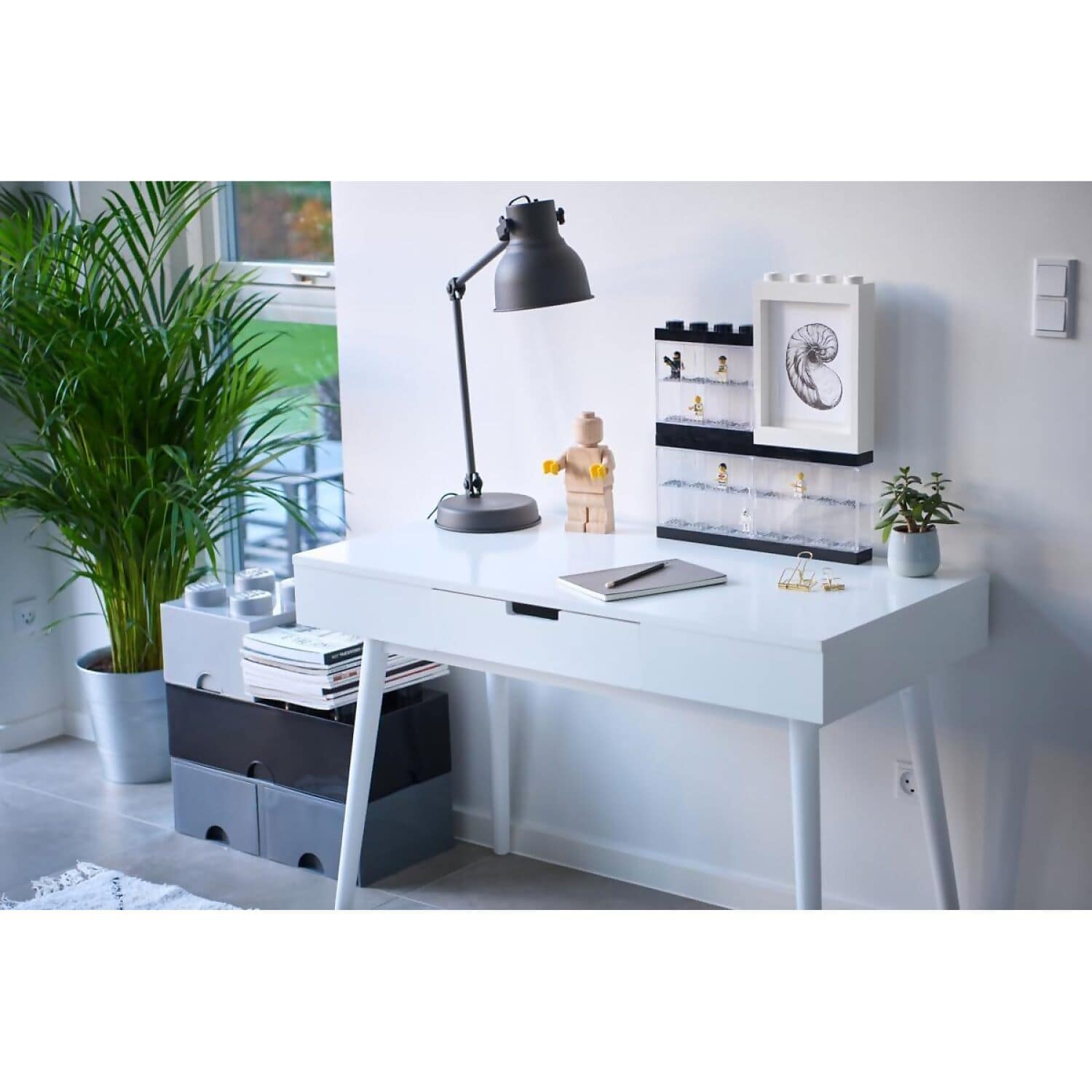 Showcase your favourite LEGO® minifigures in style with the LEGO Minifigure Display Case 16 Black by Room Copenhagen. This sleek and stackable case features 16 individual compartments, each fitted with a LEGO plate to securely hold your minifigures in place. With a transparent front and bold black frame, it’s designed to highlight your collection while keeping it safe and organised.