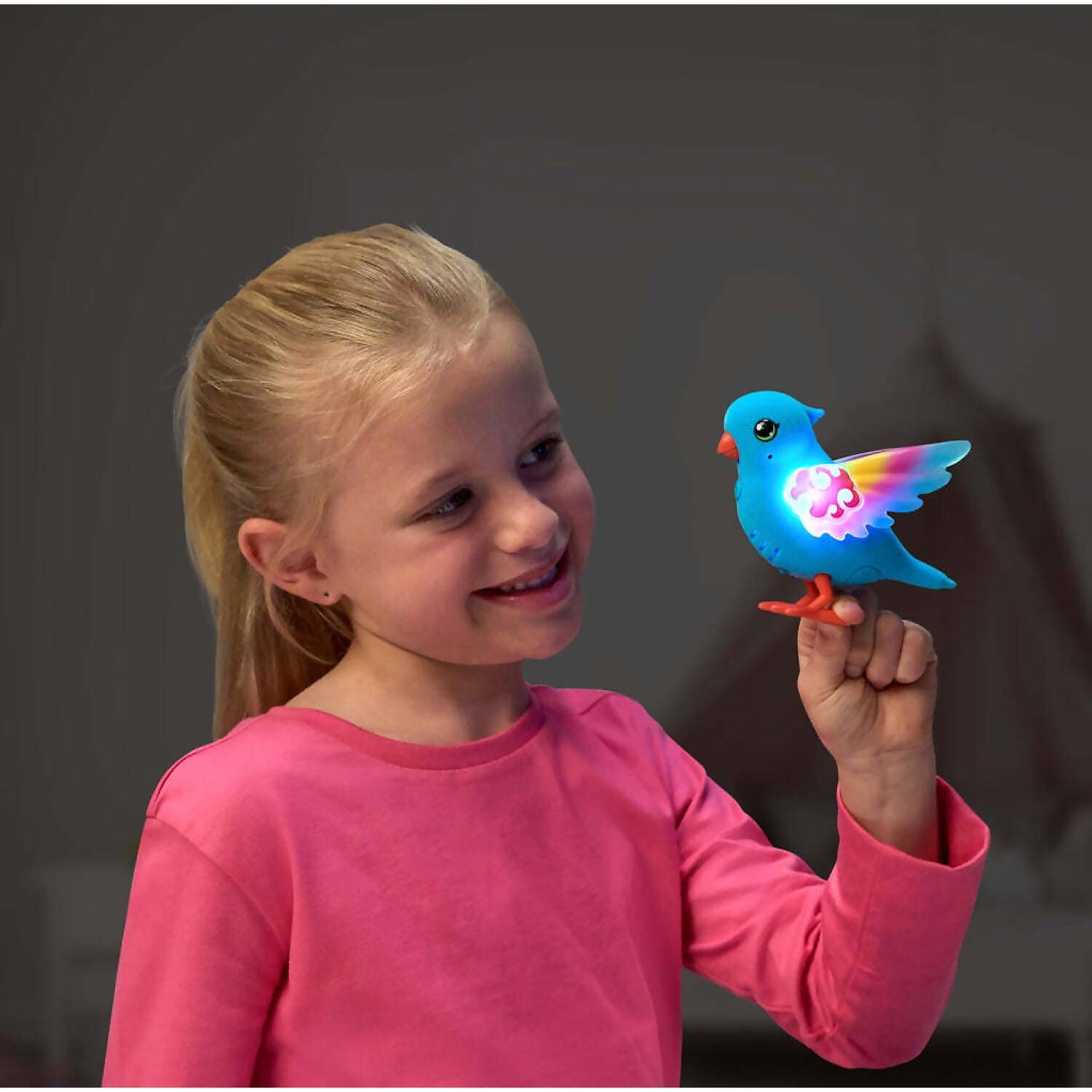Have fun with your Lil’ Bird by talking to them, listening to them, petting them and seeing its beautiful wings light up!
