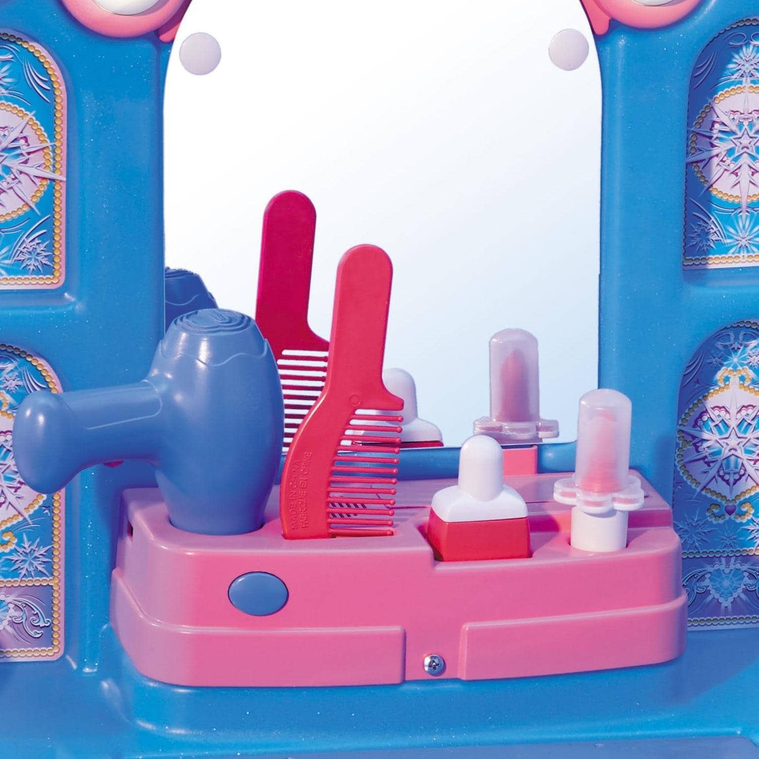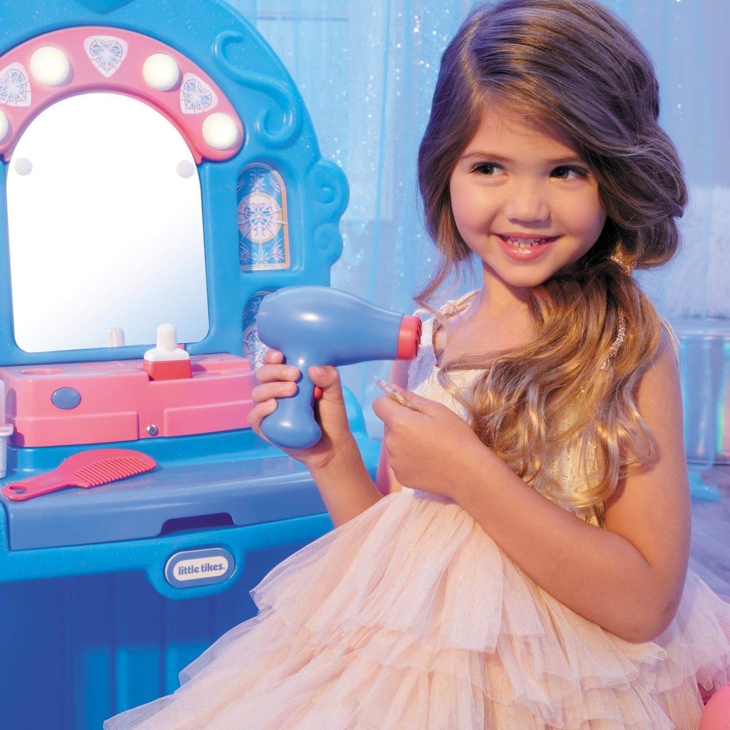 Bring your princess’ dreams to life with the Little Tikes Ice Princess Magic Mirror! The magical styling set comes with a hair dryer, comb, nail polish and lipstick so that your princess can get ready for the ball all by herself. The Ice Princess Magic Mirror makes role play even more fantastical with magical sounds and glowing lights. Sit your princess down in the included chair and let her imagination take her anywhere. When she’s finished getting ready for the ball, she can even store all her makeup and accessories in the built-in storage drawer.