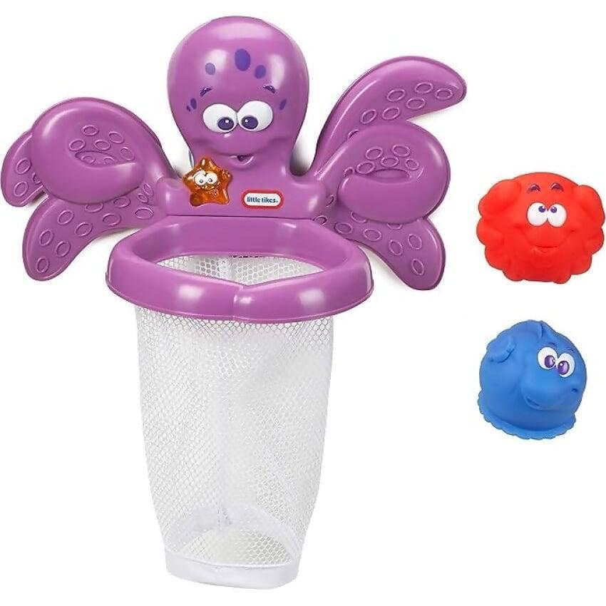 The Little Tikes Sparkle Bay Octo Hoops Water Toy is a delightful and interactive toy designed to make bath time more fun. This toy features a silly sea creature basketball game that encourages children to toss the basketball characters into the hoop to score. Each successful basket activates lights to celebrate, adding an extra layer of excitement to the game.