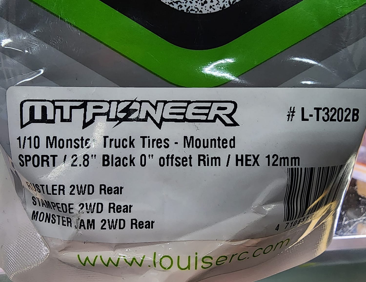 RIM: Rim’s Car Side Outer Diameter (Inches): 2.8 Rim’s Car Side Outer Diameter (mm): 71 Rim’s Curb Side Outer Diameter (Inches): 2.8 Rim’s Curb Side Outer Diameter (mm): 71 Rim’s Width (mm): 48 Rim’s Suited Vehicle Type: Truck Rim’s Hex Size (mm): 12 Rim’s Attachment Type: Hex Rim’s Tyre Attachment Method: GlueTyre TIRE: Tyre’s Outer Diameter (mm): 122 Tyre’s Suited Rim Width (mm): 48 Tyre’s Suited Terrain Type: Off Road Tyre’s Suited Vehicle Type: Truck Tyre’s Fitment Method: Glue