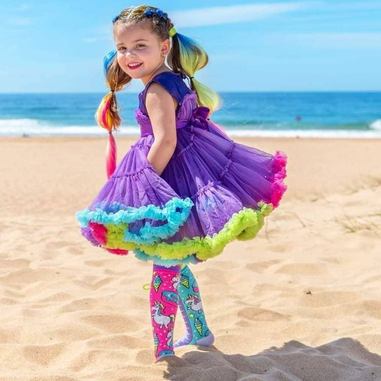 Always be yourself. Unless you can be a unicorn. Then always be a unicorn in your MADMIA Unicorn Socks. MADMIA Unicorn Socks are a mix and match pair in blue and pink, with a unicorn print, and the perfect mix of sweets with donuts, ice-cream, and a dazzle of stars. Complete with shoelace print and shoe lace topper in yellow and blue.