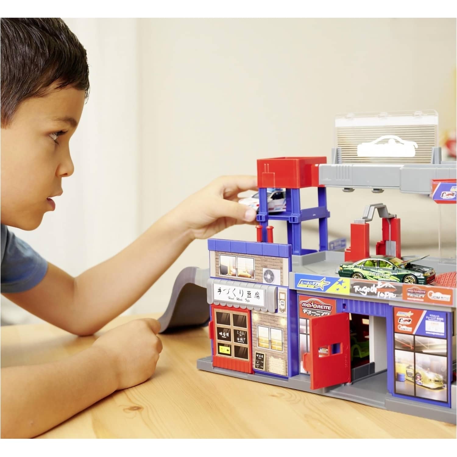 • Japanese style – Boasting Japanese-style features including a tofu shop, this garage is the perfect home for the Japan Series cars from the Majorette Deluxe range.