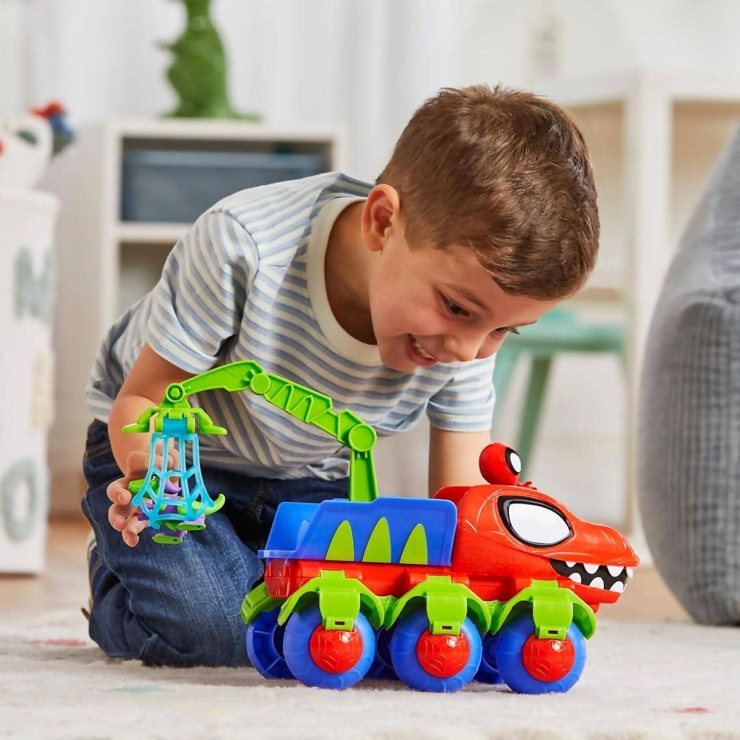 Imagine roaring into Dino-chomping action and adventure with the Marvel Spidey and His Amazing Friends Dino-Webs Crawler!