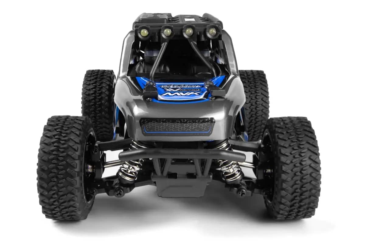 Included with the DOHA is the Maverick Element 600mAh Li-ion battery, a practical USB charger, the MTX-201 2.4GHz radio system, and the 2-in-1 water-resistant MSRS-201 receiver/speed and light controller. Additionally, the DOHA is fitted with LED lights on the roof cage, enabling operation in low-light conditions for extended playtime after sunset.