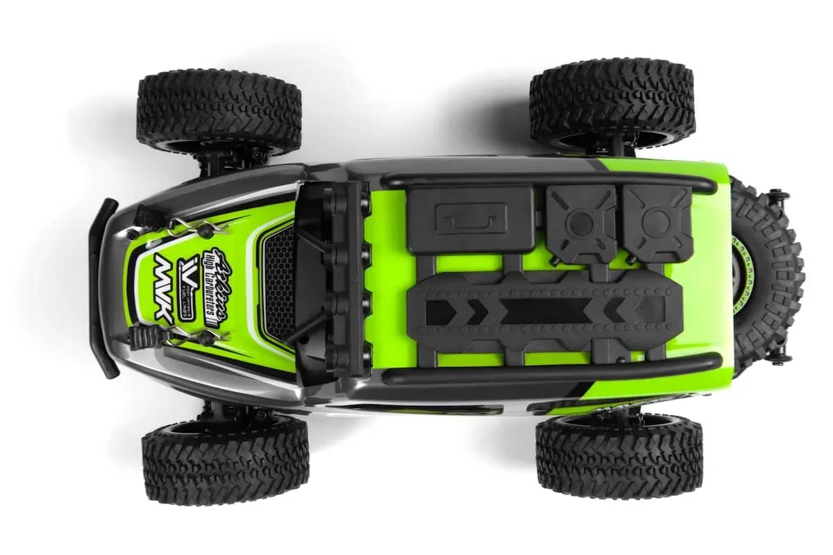 Included with the DOHA is the Maverick Element 600mAh Li-ion battery, a practical USB charger, the MTX-201 2.4GHz radio system, and the 2-in-1 water-resistant MSRS-201 receiver/speed and light controller. Additionally, the DOHA is fitted with LED lights on the roof cage, enabling operation in low-light conditions for extended playtime after sunset.