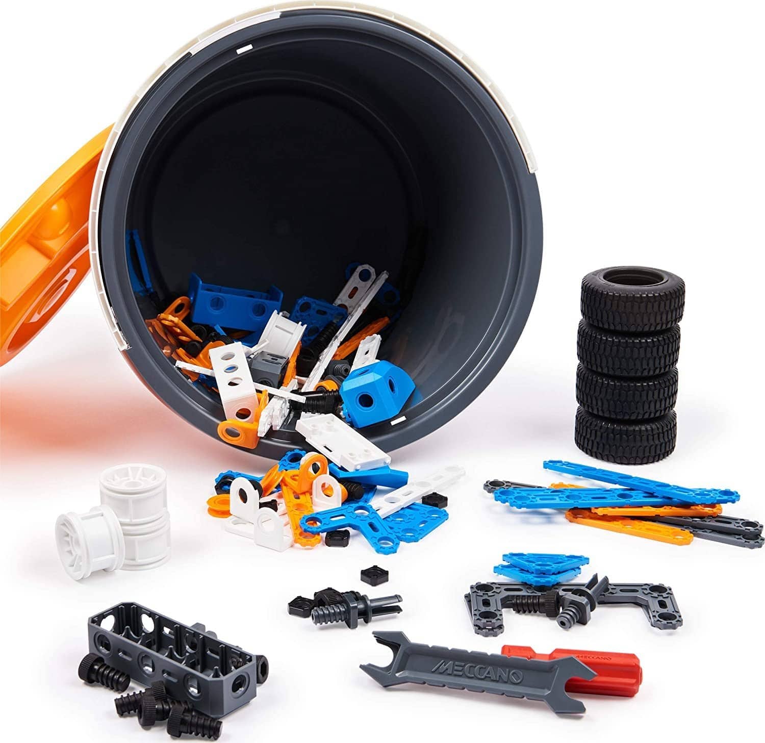 With the Meccano Junior 150-Piece Free Play Bucket the building possibilities are endless!