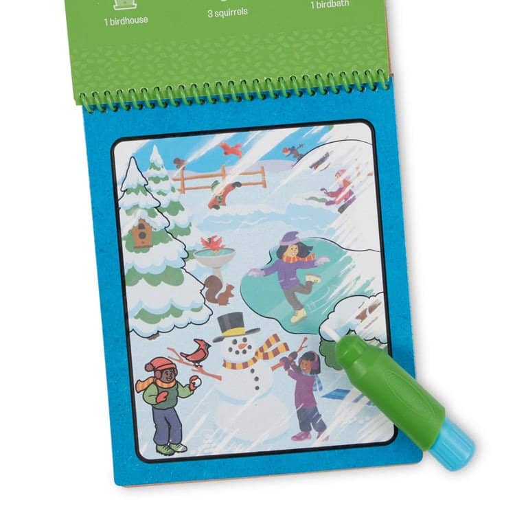 - 4 spiral-bound seasons-themed coloring boards (winter, spring, summer, fall) and a refillable water pen