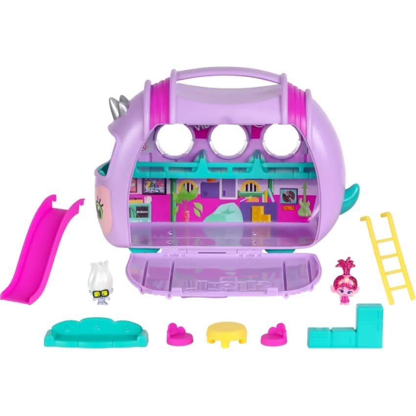 The DreamWorks Trolls Band Together Rhonda Play & Display Case is the perfect way for you child to take the fun and adventure of Trolls with them wherever they go! This adorably cute playset opens out to reveal a little home on wheels for all their collectible Mineez figures! With many fun accessories such as furniture, a kitchen and even a slide, the DreamWorks Trolls Band Together Rhonda Play & Display Case has hours of excitement and playful travel adventures for your young ones!