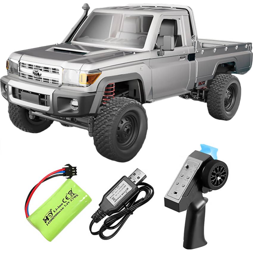 The MN Model 1/12 Toyota LC79 4WD Crawler (LED Lights) RTR RC Car MN-82-PRO is a rugged and realistic remote-controlled vehicle built for adventure. This officially licensed 1:12 scale replica captures the iconic styling of the Toyota Land Cruiser LC79 with impressive detail. Its 4WD drivetrain, proportional throttle, and steering system allow for smooth control across a variety of terrains.