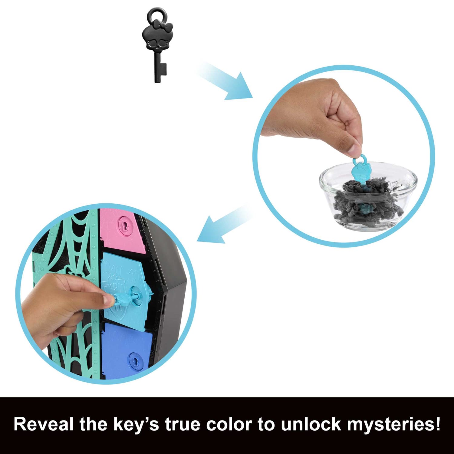 - Can you creep a secret Take the four keys and wash off their spooky black coating for a Colour Reveal moment, then unlock all four matching compartments to discover hidden items stashed inside.