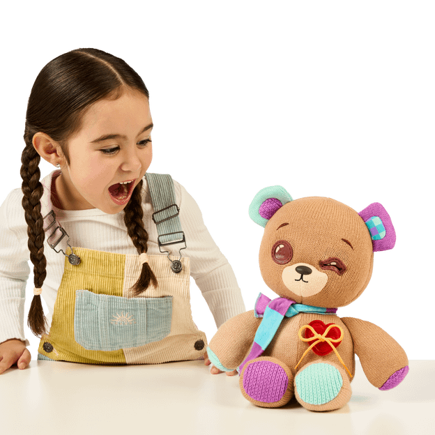 Thready Bear is an interactive plush toy that comes to life with a magical button heart. Children can make a wish and watch Thready Bear’s heart glow, bringing the bear to life. This adorable bear features expressive button eyes that show various emotions, making it a delightful companion for kids.