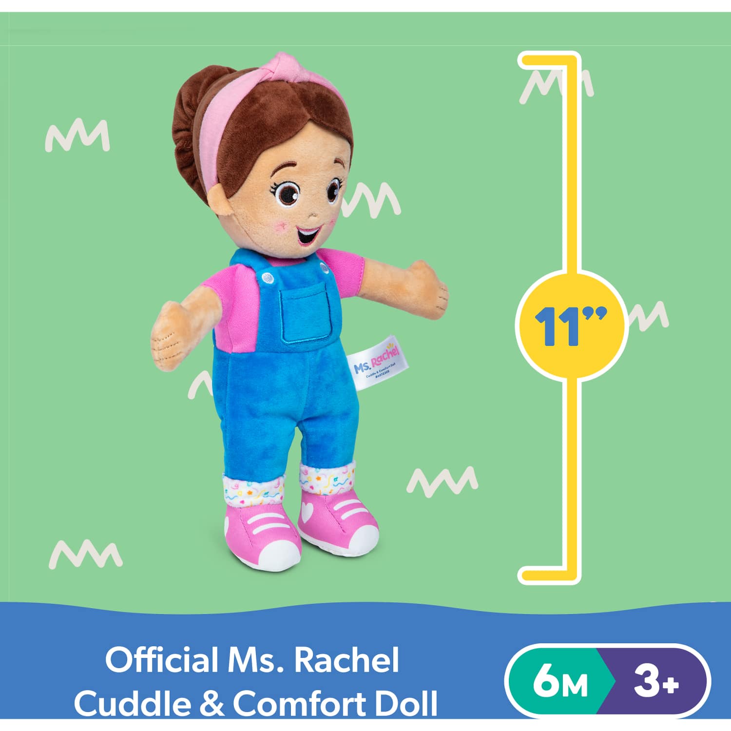 Little fans will love snuggling with the Ms. Rachel Cuddle & Comfort Doll. Inspired by Ms. Rachel’s videos, this toy is made with love to support learning for littles. Plush toys are a child’s very first pretend play friend and important developmental toys for infants and babies of all ages, stages, and learning abilities. The Cuddle & Comfort Doll is made for cuddles and hugs, and for mimicking and practicing gestures like peek-a-boo to encourage early speech development.