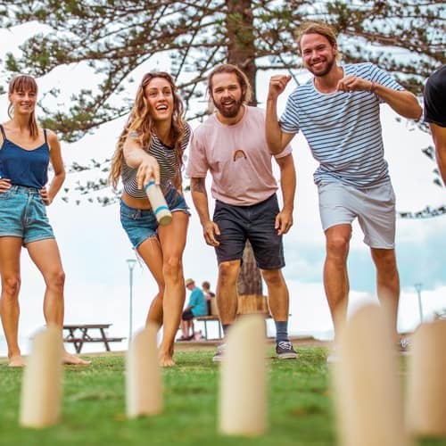 Gather your comrades and throw the log to earn points in this classic game of skill. This set includes 12 wooden pins, a quality throwing log to knock them down as well as a hardwearing crate to store and transport.