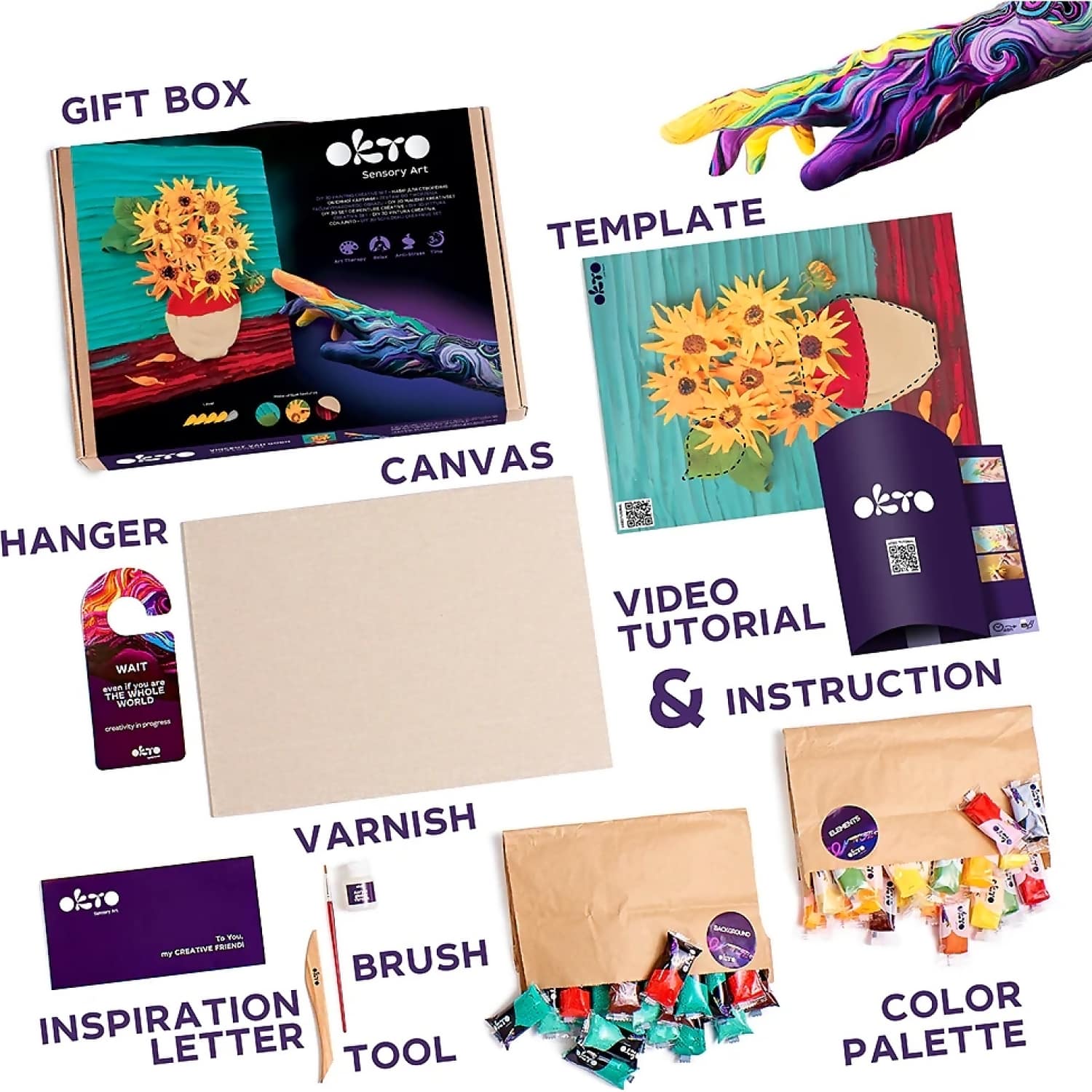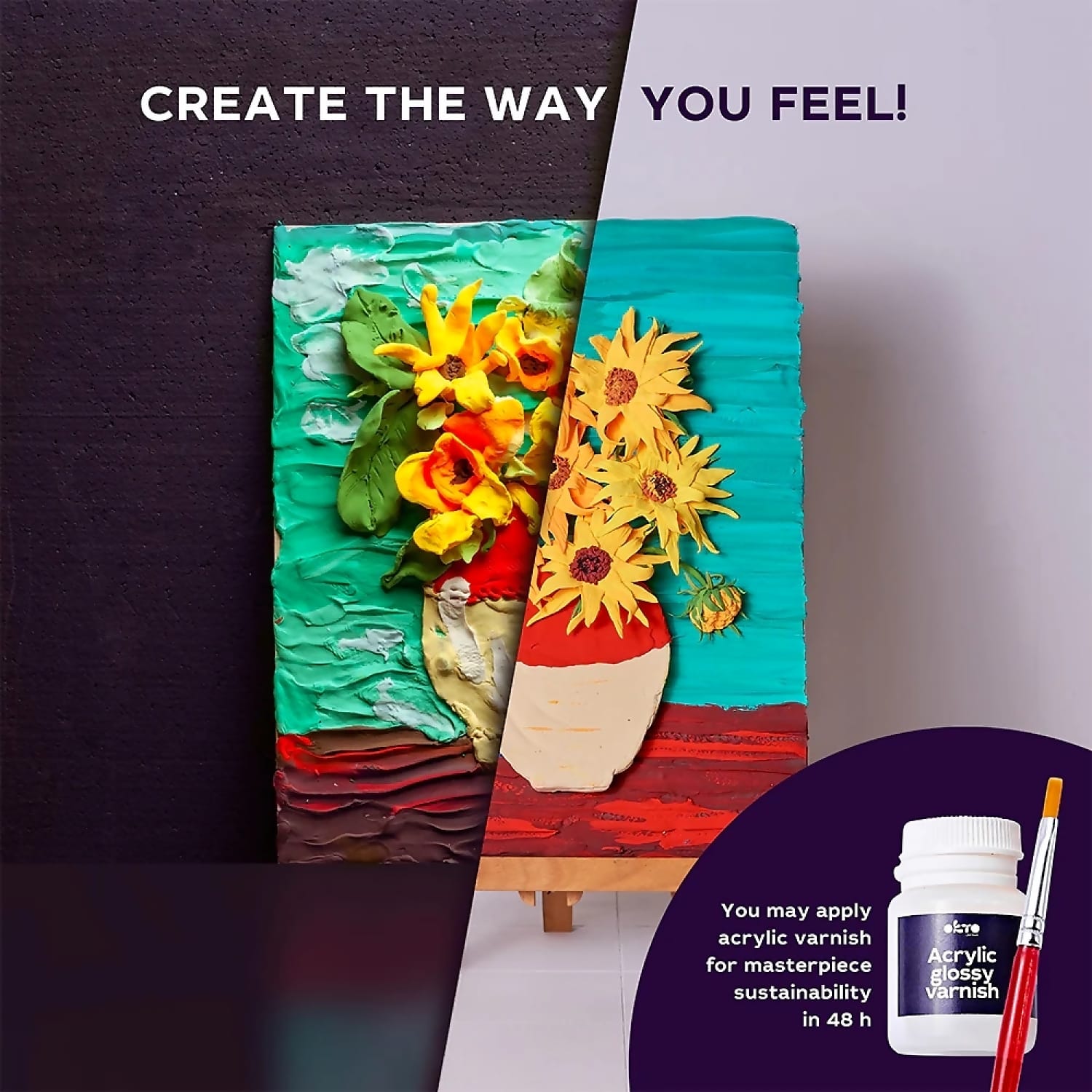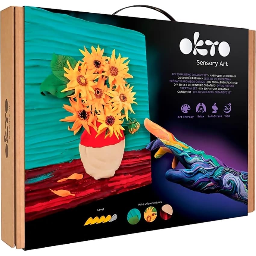 Celebrate the vibrancy of nature with the OKTO Sensory Art – DIY 3D Painting Creative Set Sunflowers. Inspired by Van Gogh’s iconic floral motif, this set invites users to sculpt radiant yellow petals and a tranquil turquoise background using soft, mess-free clay. The process is both meditative and expressive, offering a tactile escape into artistic creation.