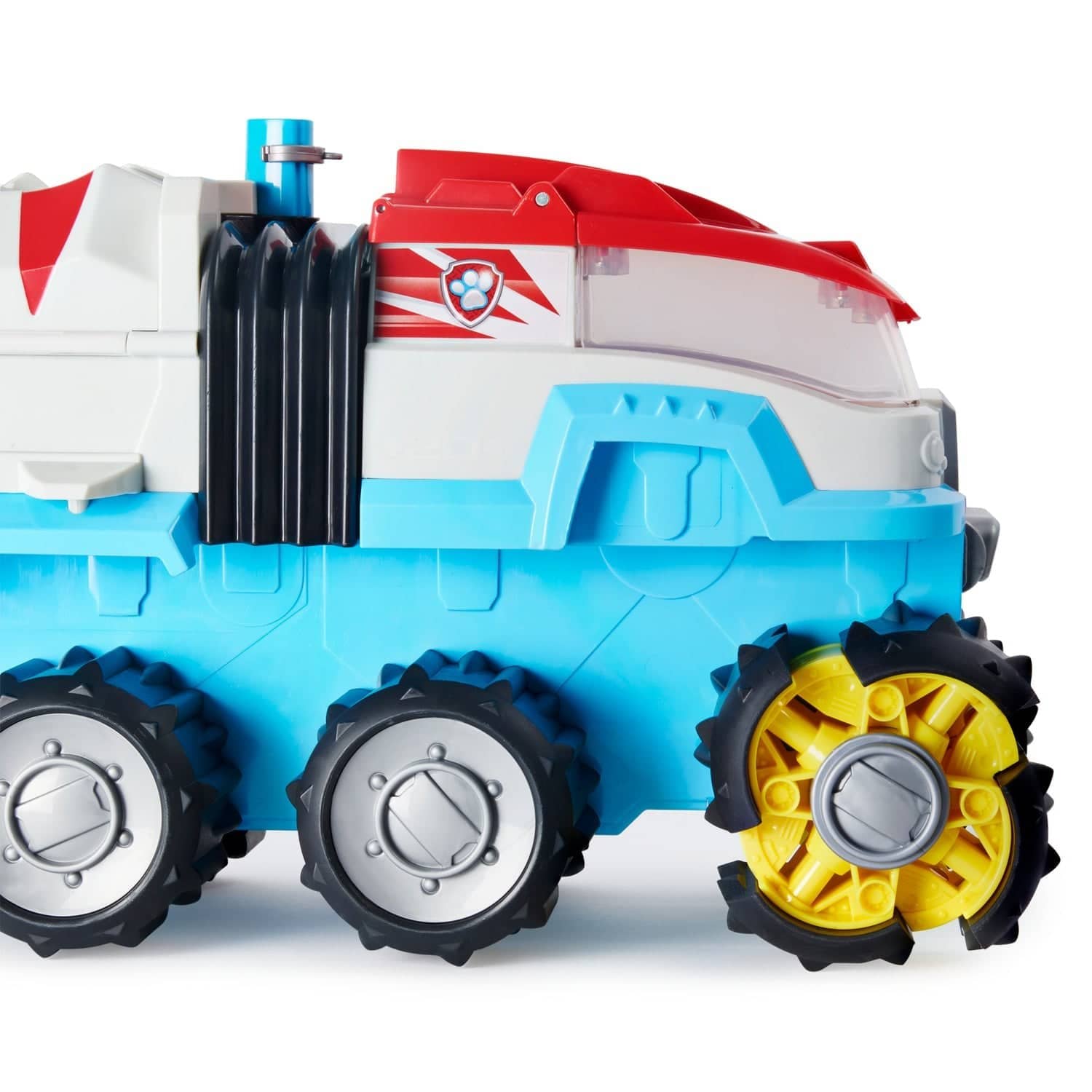 Jump into action with PAW Patrol! Saving the day is more adventurous than ever with the Dino Patroller, the first-ever motorized PAW Patrol team vehicle! Featuring room for all six animals, oversized wheels, a projectile launcher and exclusive Chase and T. rex dinosaur action figures, the Dino Patroller TOY CAR is ready to roll! When the dinosaurs yelp for help, place Chase and another animal pup (sold separately) in the cab and a Dino Rescue Deluxe car (sold separately) into the back bay. Boys and girls load the projectiles into the launcher and get ready for epic rescue missions. Press the vehicle’s badge button all the way down and watch it move! With its oversized wheels, the Dino Patroller is able to conquer any terrain! As you play out your dino rescue adventures, push the tail to make the large-scale dino’s mouth open and help the PAW Patrol spot your T. rex in trouble! Deploy your Deluxe Vehicle from the bay and launch the rescue nets to help save the day! Create your own prehistoric missions just like in the hit show again and again. Go on action-packed dino rescues with the PAW Patrol and the Dino Rescue Dino Patroller!
