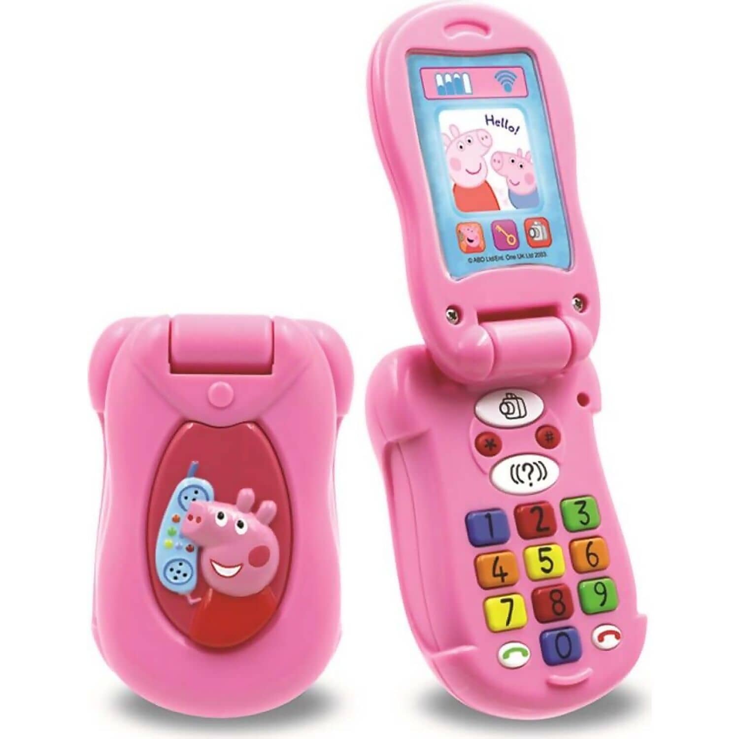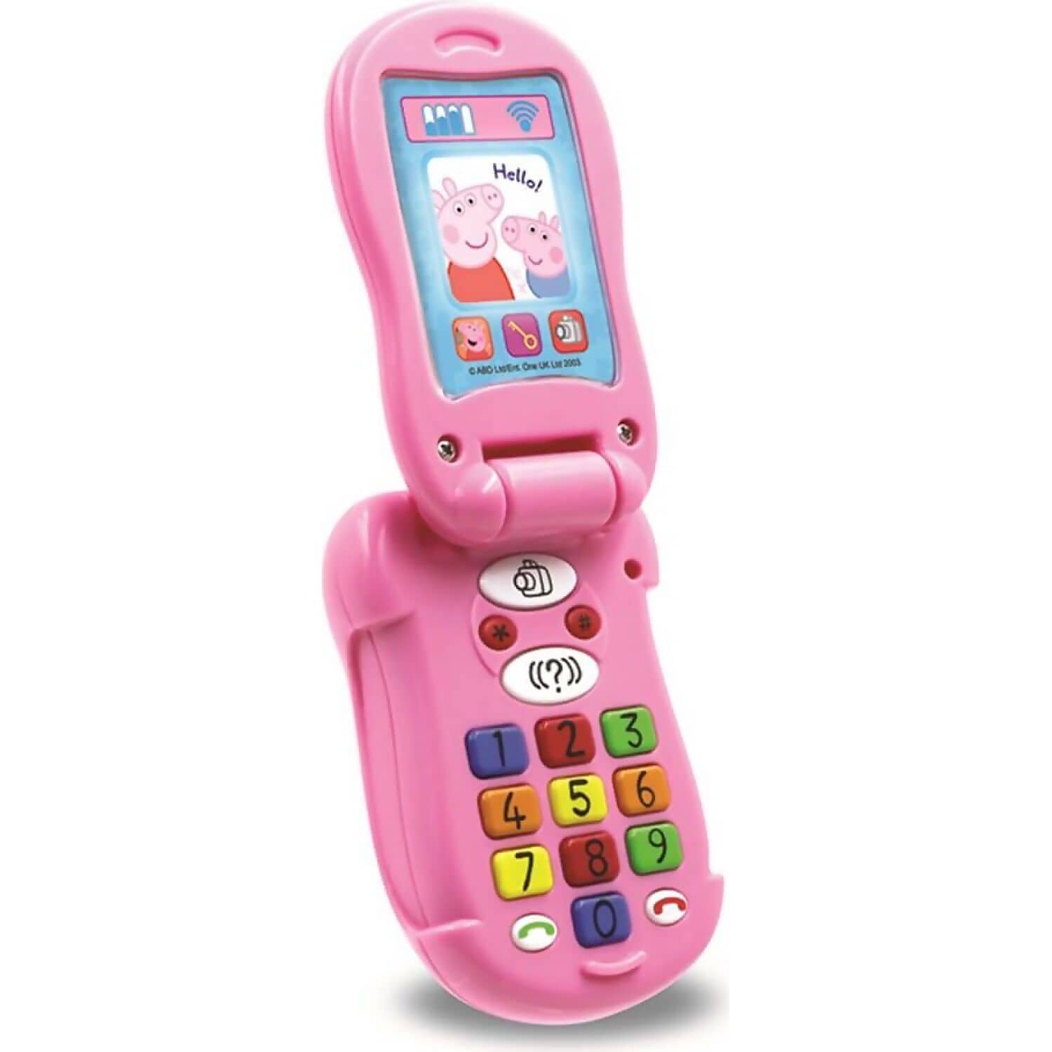 Make and receive calls with Peppa’s Flip & Learn phone. Dial the multi-coloured buttons to listen to Peppa and other favourite characters from the popular TV show talk, including Rebecca Rabbit, Suzy Sheep and Candy Cat!