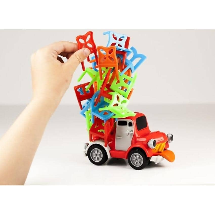 Pete the Pick-Up Truck is a motorized, self-driving truck and he loves helping you carry your things! Take turns stacking your vibrant little chairs in the back of Pete as he drives round and round in a circle. Whoever stacks all of their chairs first wins!