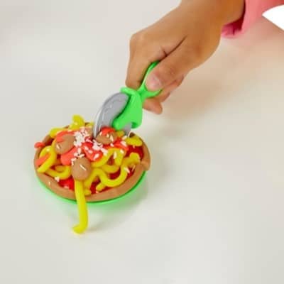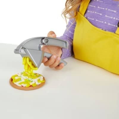 5 PLAY-DOH CANS AND 6 ACCESSORIES – This Play-Doh toy is great for kids who love modeling clay and cooking. It comes with 5 standard-size 2-ounce Play-Doh cans, plus a pizza paddle, cutter, and more.