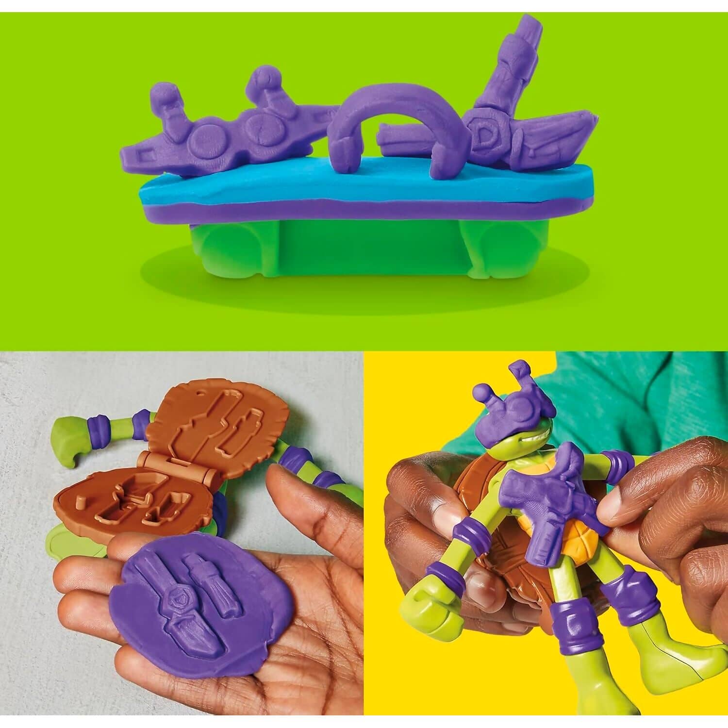 The included Donatello figure has bendy arms and legs, adding a fun sensory twist to playtime. Moulds on his shell and the playset allow children to create ninja gear like belts, knives, and skateboards. With three vibrant Play-Doh colours, this set encourages storytelling, creativity, and hands-on fun.