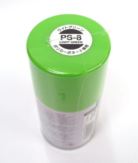 SPRAY PS (POLYCARBONATE) These spray paints were developed especially for decorating transparent polycarbonate bodies used in R/C car modeling. Each can contains 100ml of paint, which is the appropriate amount for finishing one complete model. Painting polycarbonate bodies is done from the inside of the body shell as opposed to the outside of a traditional plastic model. When spraying body from the inside, keep the can about 30cm from the surface. After curing apply another coat as necessary. These paints are impervious to oil and fuels, so they can be safely used on gas-powered R/C bodies. Warning: Never use these paints on plastic models.