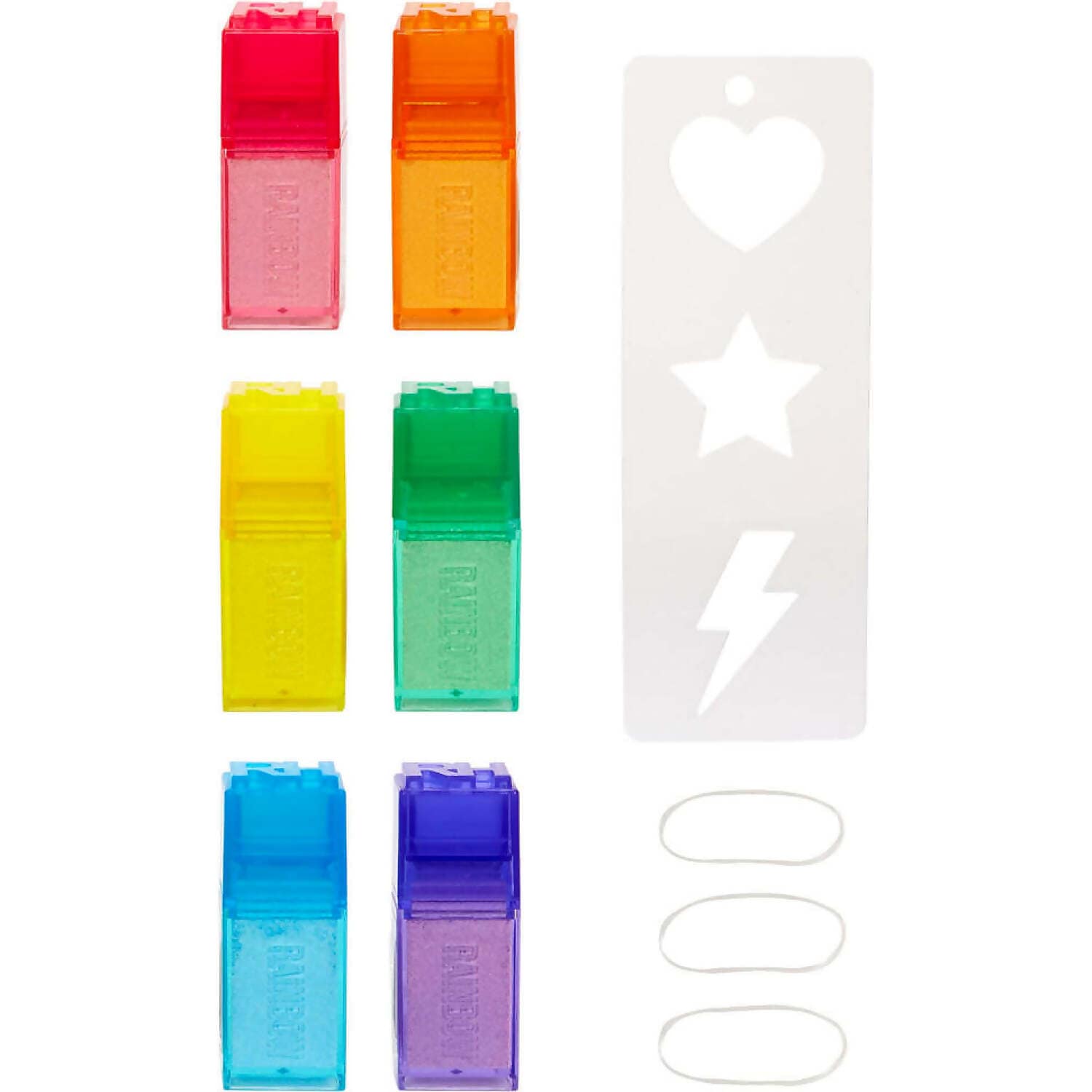 DIP IT! Just add water to the 6 rainbow colored powders to create watercolors, then dip clothes and hair. Includes 6 colors (pink, orange, yellow, green, blue, and purple) to make so many colorful designs. It’s so easy!