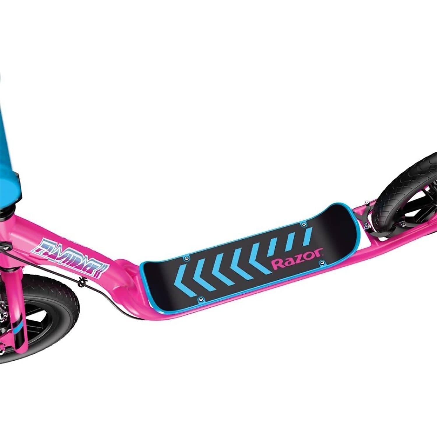 The Razor Flashback kick scooter is a homage to the early days of BMX and Razor’s Californian heritage. You’ll find everything you love about the ’80s and ’90s BMX era on this scooter —plus all the comforts and improvements of three decades of technological fine-tuning.