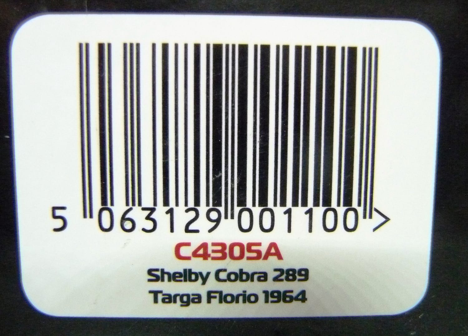 • License line : Shelby Cobra 289 are registered trademarks and/or intellectual property of Carroll Shelby Licensing,Inc and are used under license