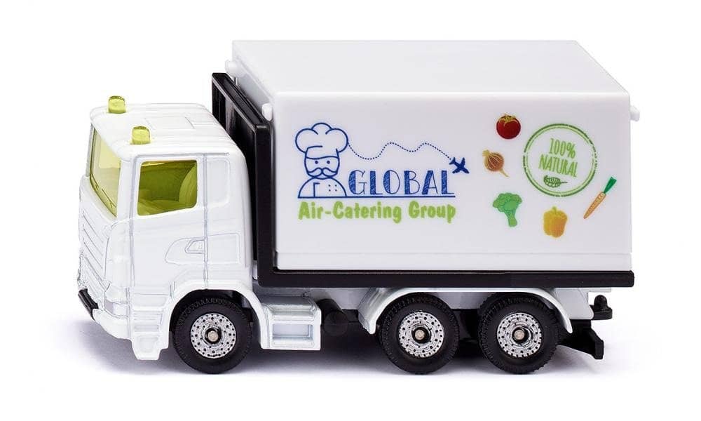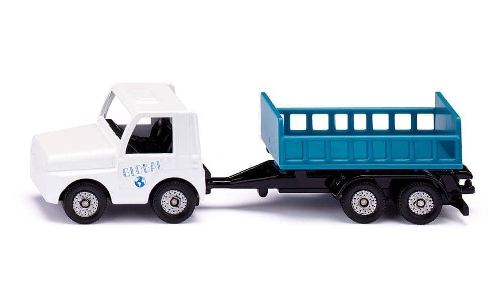 The airport fascinates passengers, whether small or grown-up. A never-ending stream of aircraft landing and taking-off, with tractors and loads coming and going in between. The new siku airport set consists of a four-jet commercial aircraft, a catering vehicle for the onboard meals, a trailer with passenger steps, an airport tractor, and a luggage trailer. The height of the catering-vehicle can be adjusted by means of a scissors mechanism. Together with the front and rear flaps of the luggage trailer, this simplifies loading and unloading. These flaps can also be opened. As well as the luggage trailer, the passenger steps made from metal and plastic can also be attached to the airport tractor. But where do the planes take off and land The set includes a five metre roll of self-adhesive tape, printed with typical markings. This can simply be cut off using scissors