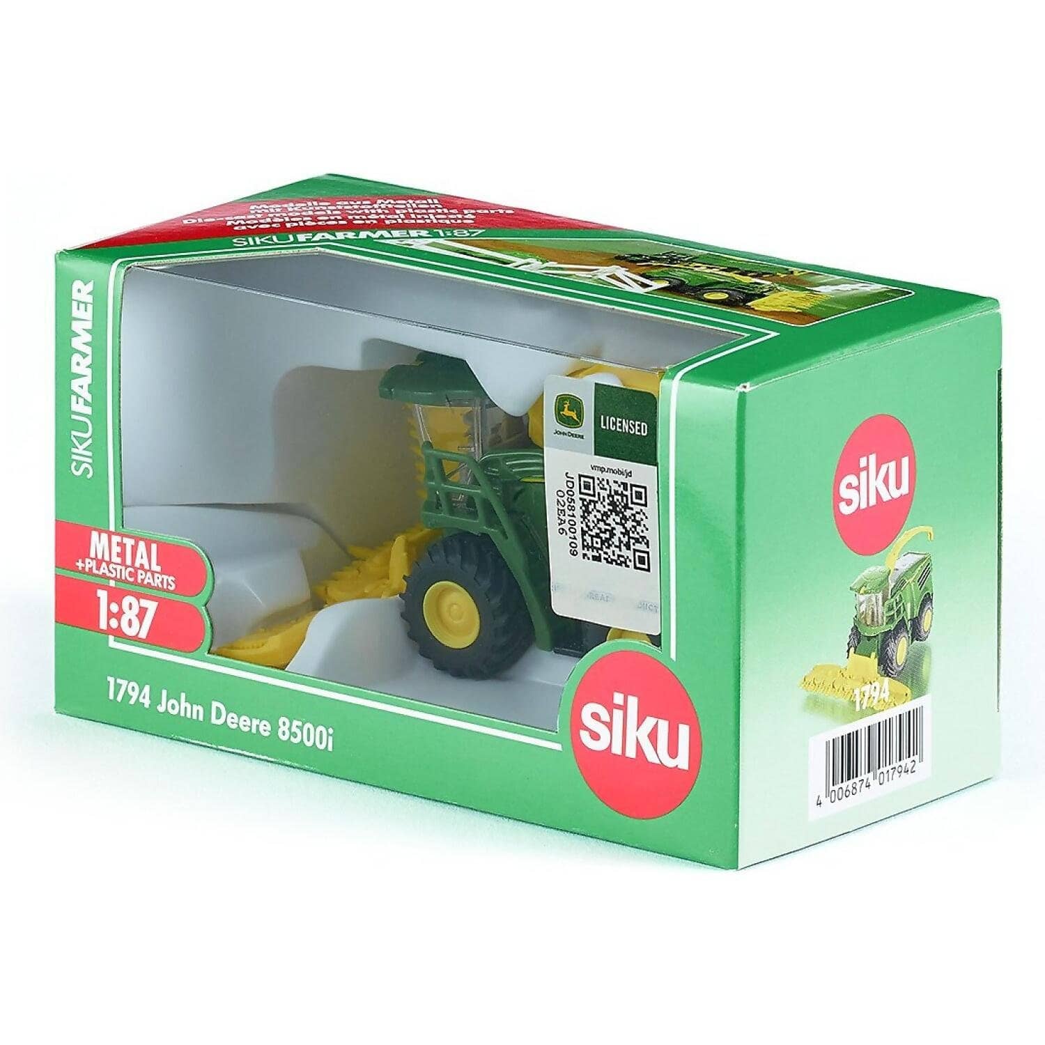 The Siku – John Deere 8500i is a realistic replica of the John Deere 8500i forage harvester. The model is made to exacting standards and exceptional quality, featuring a metal body and plastic parts. The harvester has a movable chute and the corn header can be raised and lowered.