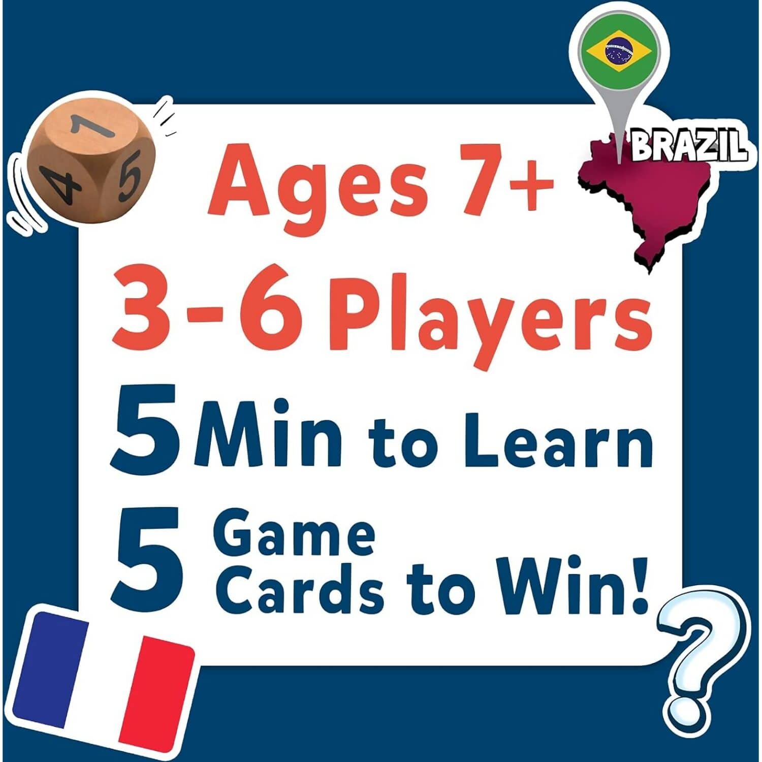 Discover and learn fascinating facts about the world as you scout countries on the world map using facts, flags and more! This adventurous and trivia-packed board game will take you around the world on family game nights, road trips & outdoor picnics.