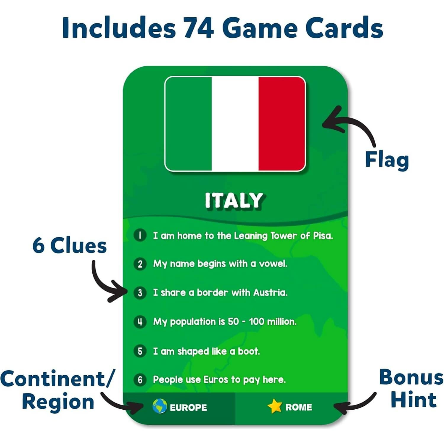It’s easy to learn and fun to play – just roll the die, use the clues and be the first player to guess five countries to win the game!
