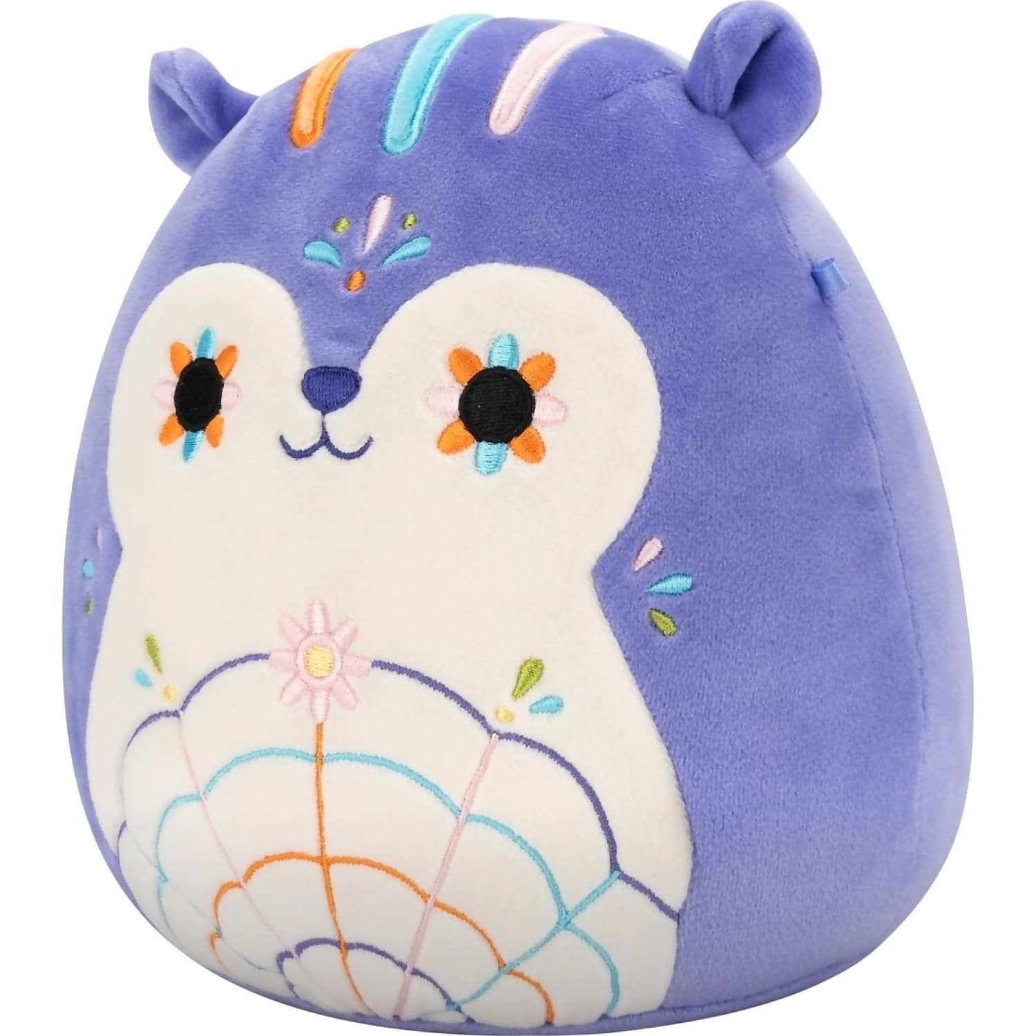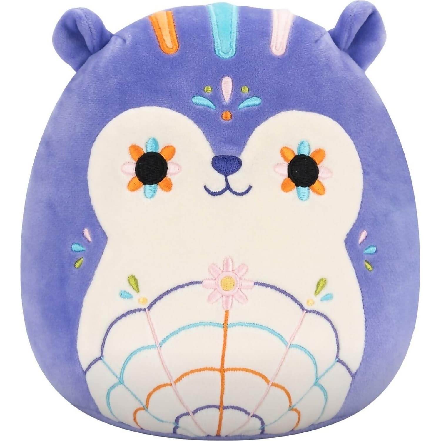 Celebrate the vibrant spirit of Día de los Muertos with Luzma the Squirrel, a limited-edition Squishmallows plush designed to honour tradition with a playful twist. Luzma features a soft purple body, white belly, and intricately embroidered floral and shell-like motifs that evoke the festive charm of the holiday. Her cheerful expression and rounded ears make her a standout addition to any Squishmallows collection.