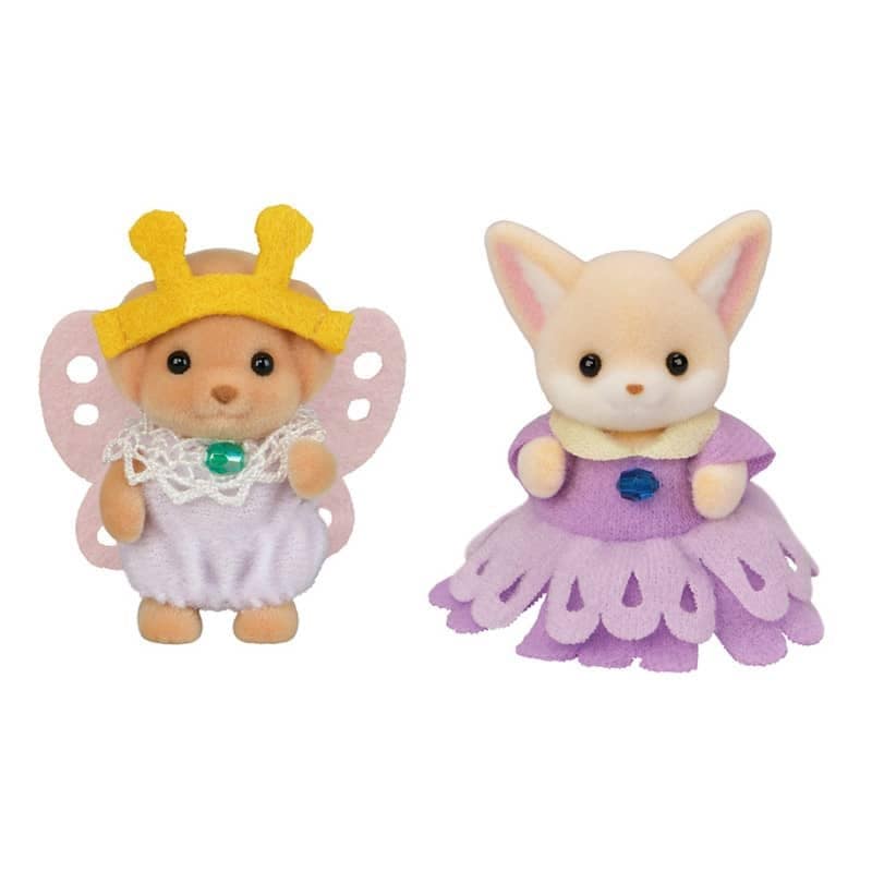 The Sylvanian Families Baby Duo Flowery Garden Friends set is a delightful addition to any child’s toy collection. It includes a baby fennec figurine dressed in a beautiful violet costume and a baby poodle figurine dressed in a charming butterfly costume. These two friends are ready to join the parade of Sylvanian Families babies at the carnival!