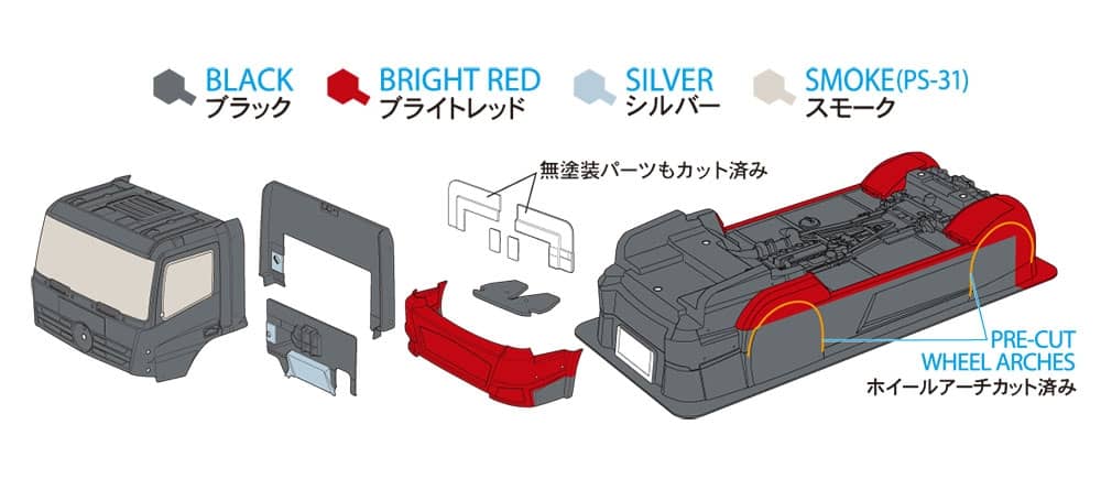 This R/C model recreates the Mercedes Actros as raced by the Tankpool24 team in the 2019 ETRC (European Truck Racing Championship). This specific recreation depicts the truck that carried the team to 4th place in the team standings, with veteran Hungarian driver Norbert Kiss taking 6th in the overall drivers™ standings. The realistic body is a 3-piece set made from lightweight and durable polycarbonate, with separately molded plastic side mirrors, coupler and rear bumper parts. The body is fitted on top of the proven TT-01 Type-E chassis, and is equipped with dedicated semi-truck wheels and tires for the model. TT-01 E Chassis The bathtub frame of the evolved shaft-driven 4WD TT-01 Type-E has its motor and battery close to the ground for lower center of gravity and optimum balance. Mounted on the bathtub frame is a Fibreglass reinforced nylon upper deck and gear covers improving rigidity, as well as a 3-piece tie rod providing a smoother steering action. The low center of gravity, great balanced design, 4-wheel double wishbone suspension system, and front and rear differential gears all come together to produce excellent operating ability. 70mm-diameter radial tires are paired with wheels developed just for this model; the high sidewalls make for forgiving turns.