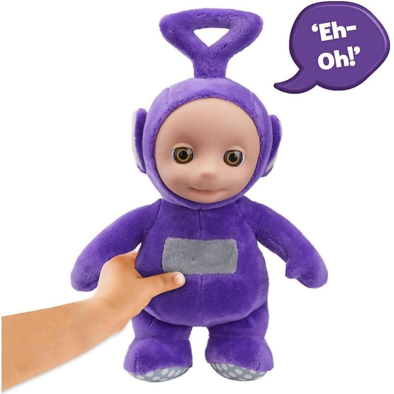 Cute and cuddly talking Tinky Winky. Made from super soft plush with original Teletubbies styling. Press Tinky Winky’s tummy to hear him talk and say his signature phrases from the show.